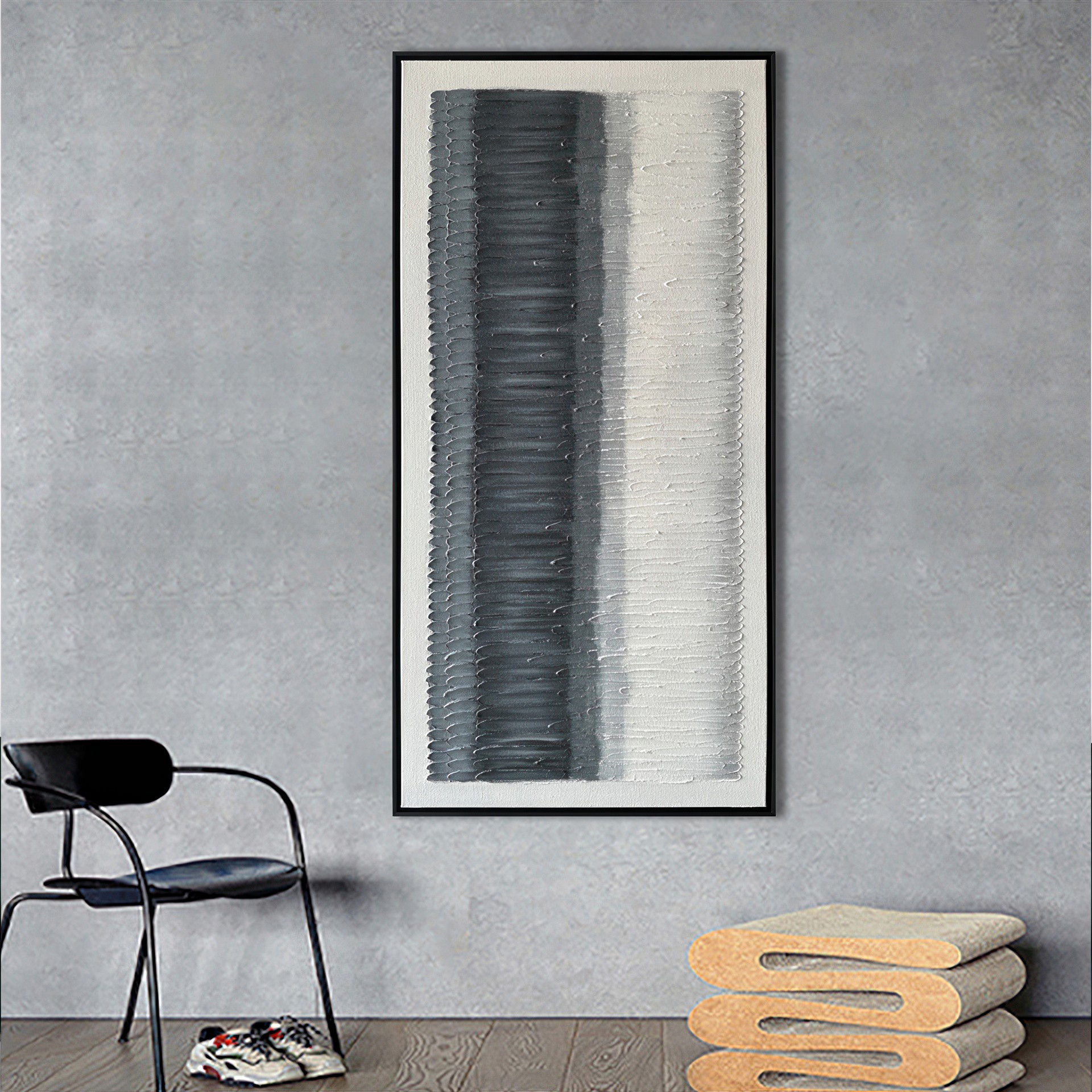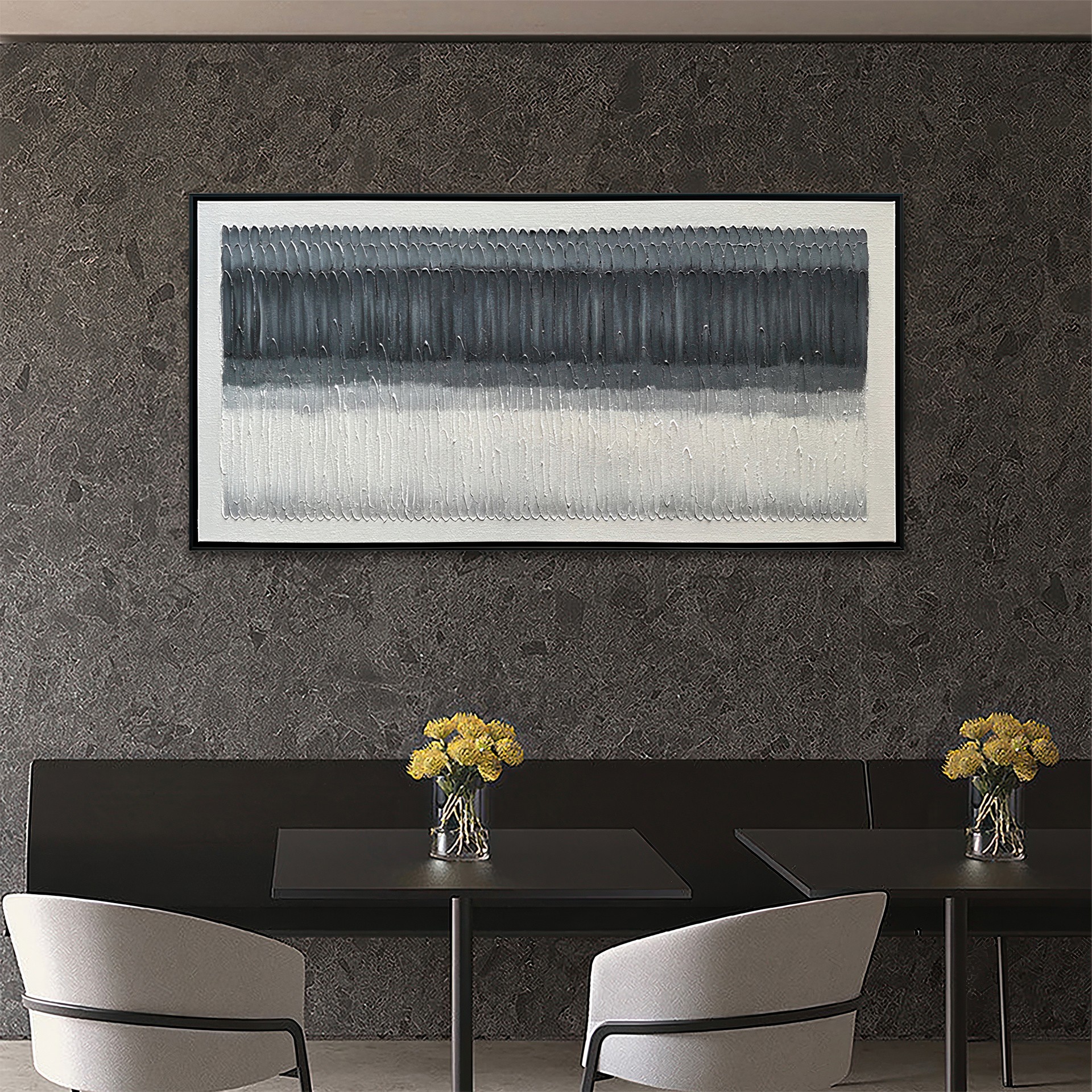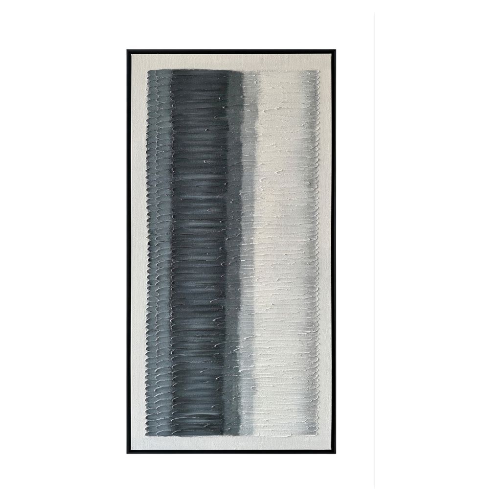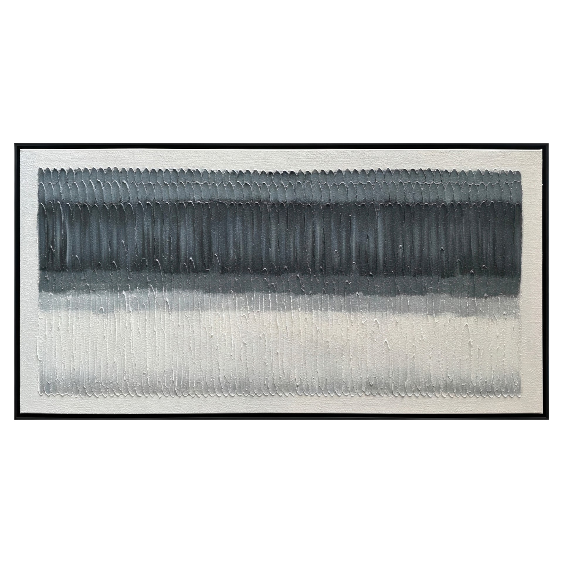La peinture abstraite bleue et blanche Expansio dans un cadre de taille 60 x 30 po rehaussera votre espace avec des oeuvres d´art murales peintes à la main à 100%, alliant sophistication moderne et artisanat.