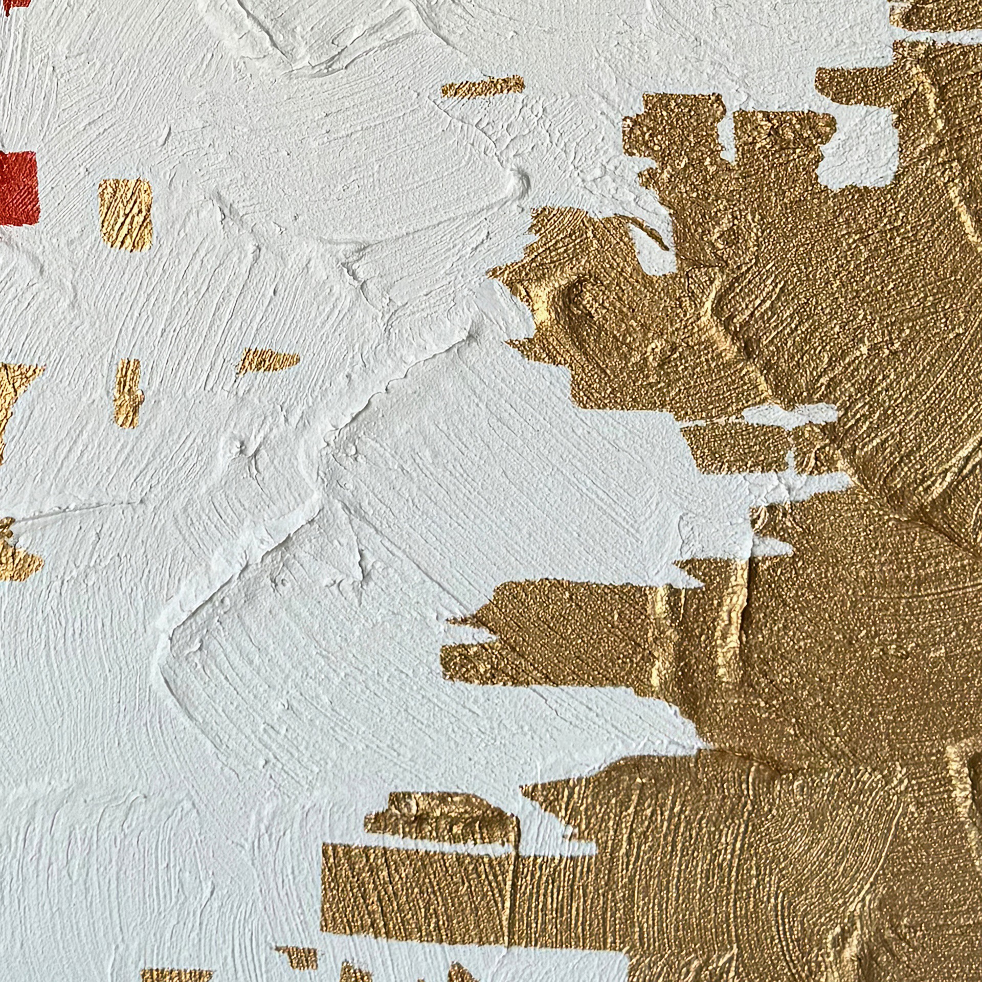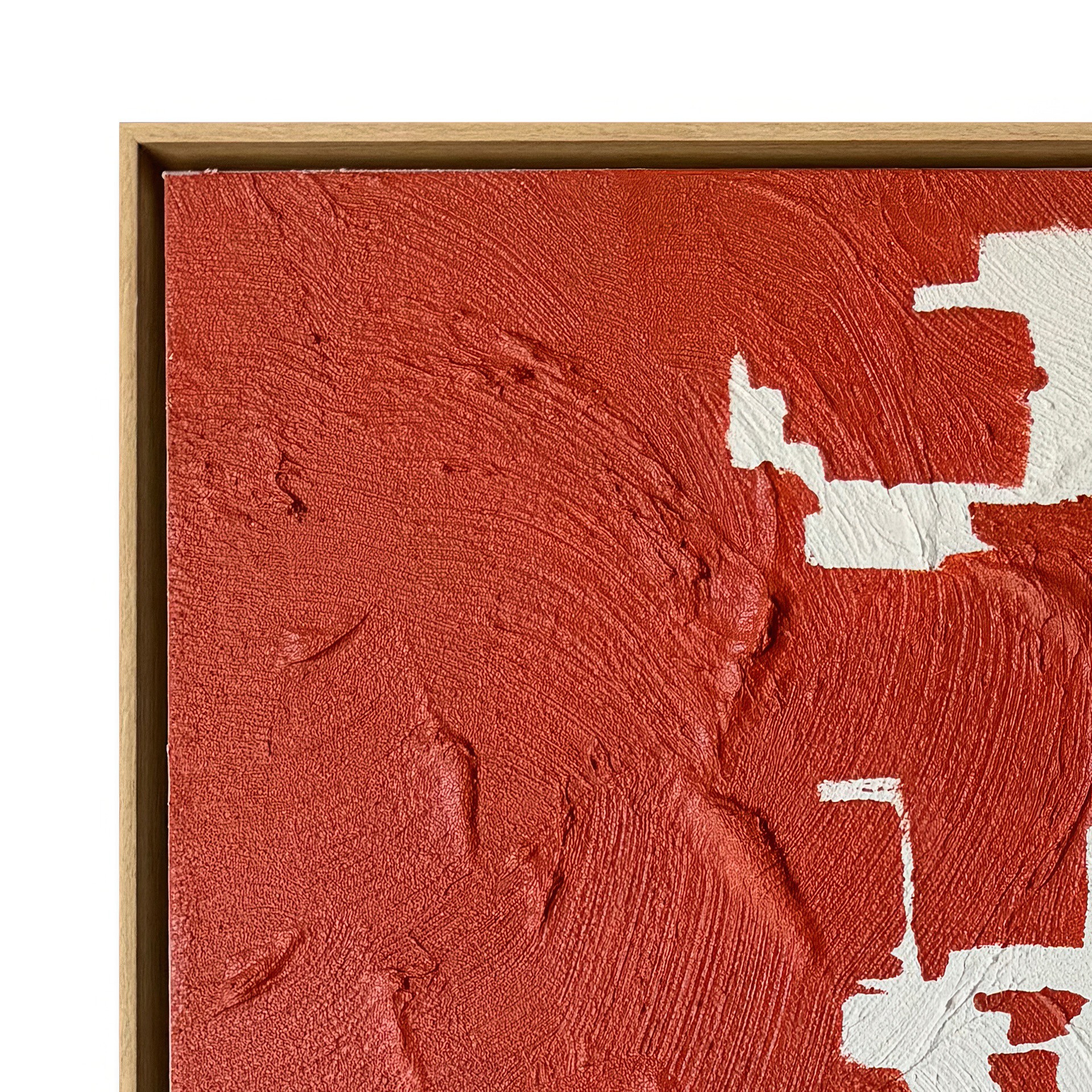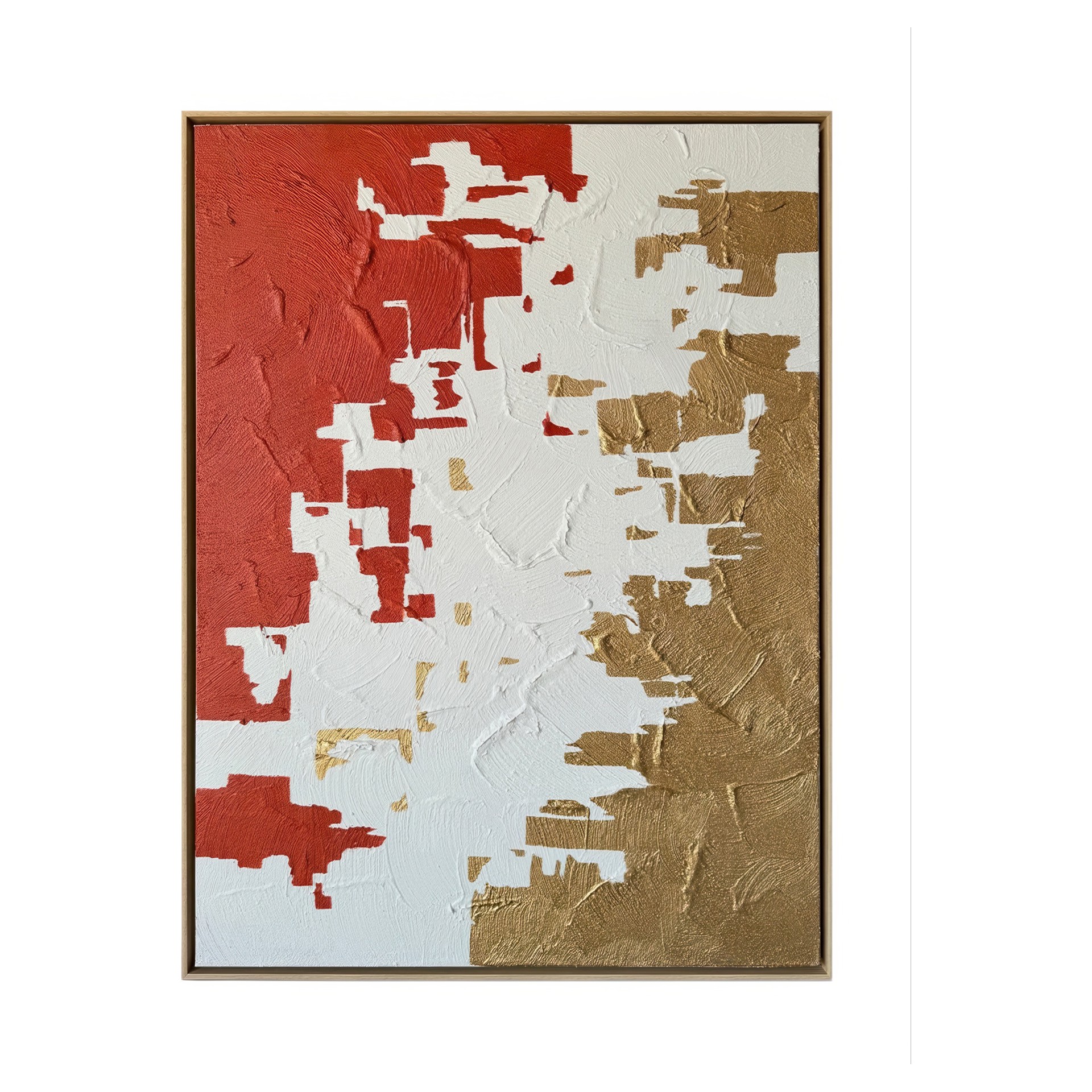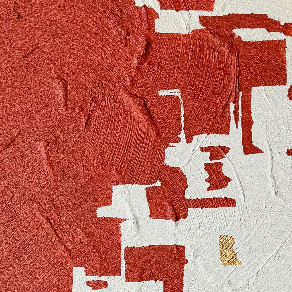 La division des textures et des couleurs du rouge, du blanc et du brun dans la peinture abstraite Metamorpho 36 x 48 po rehaussera votre espace avec des oeuvres d´art murales 100% peintes à la main, alliant sophistication moderne et artisanat.