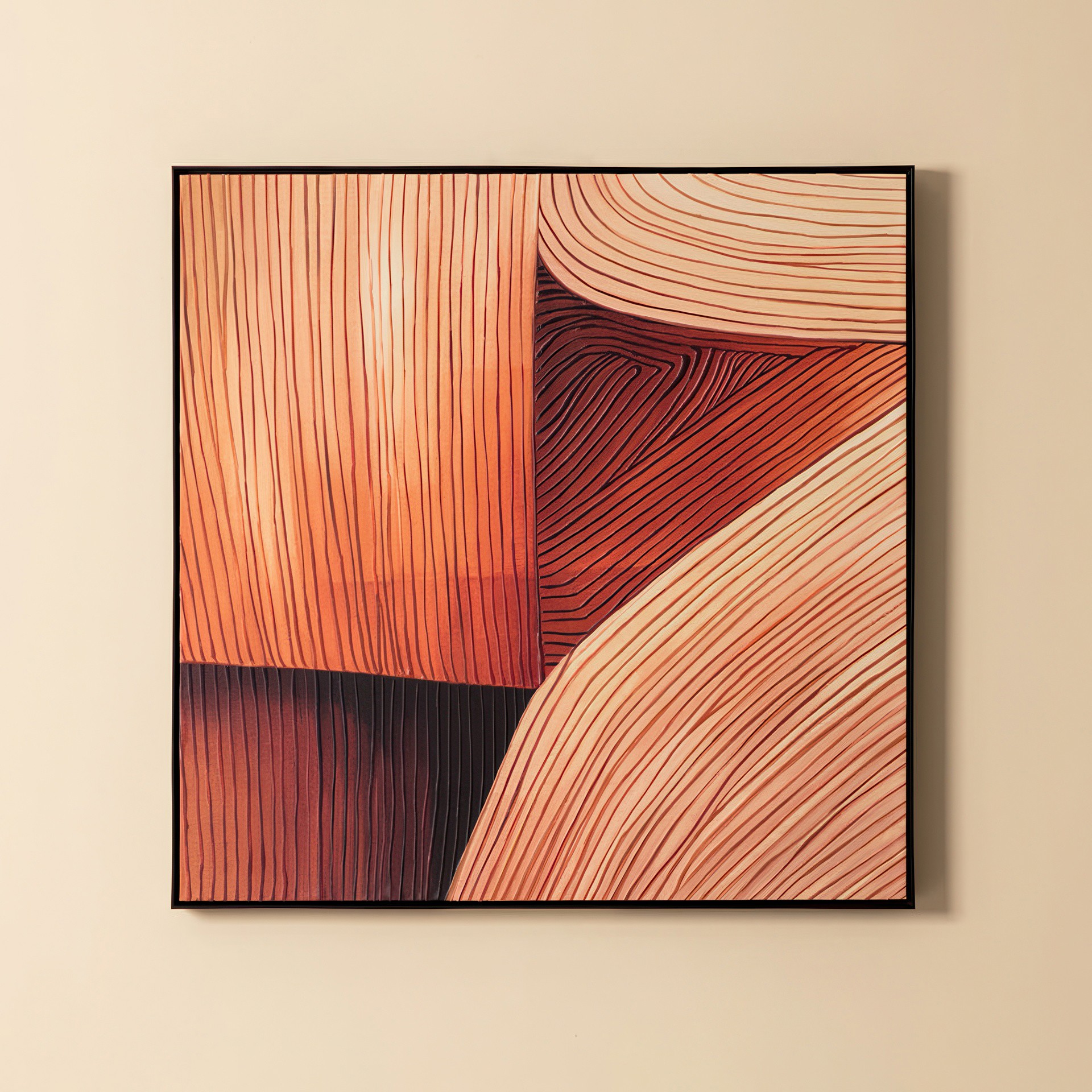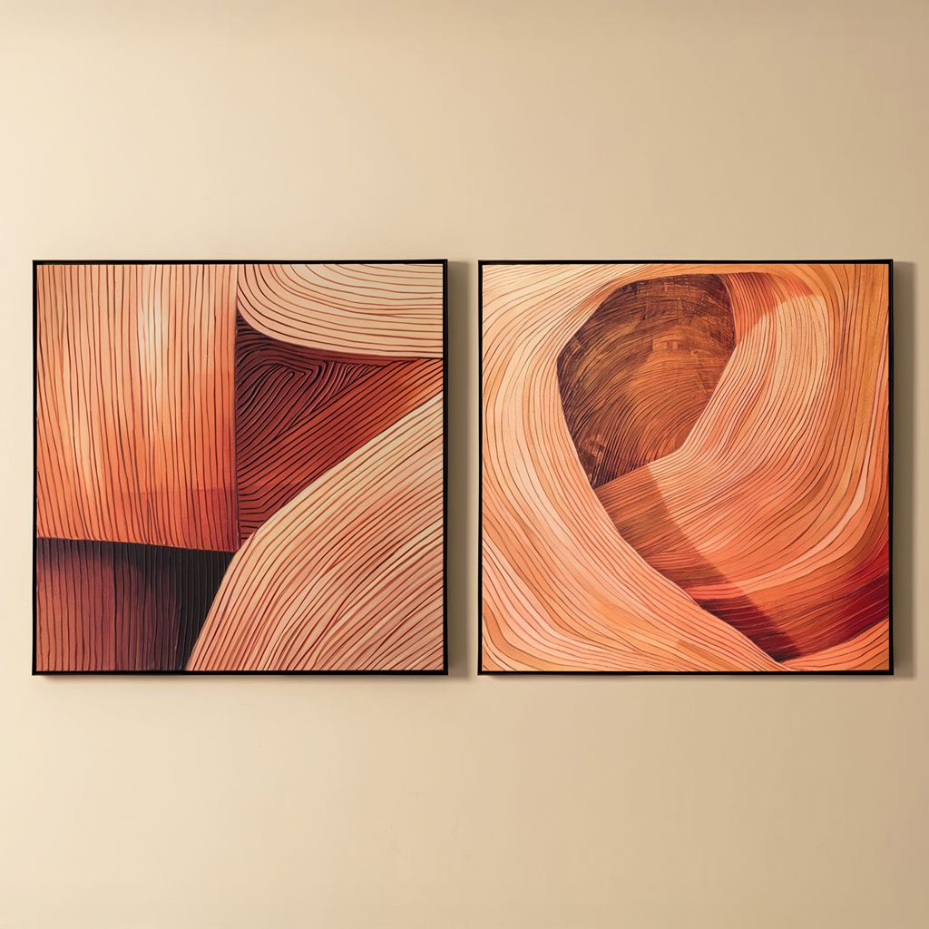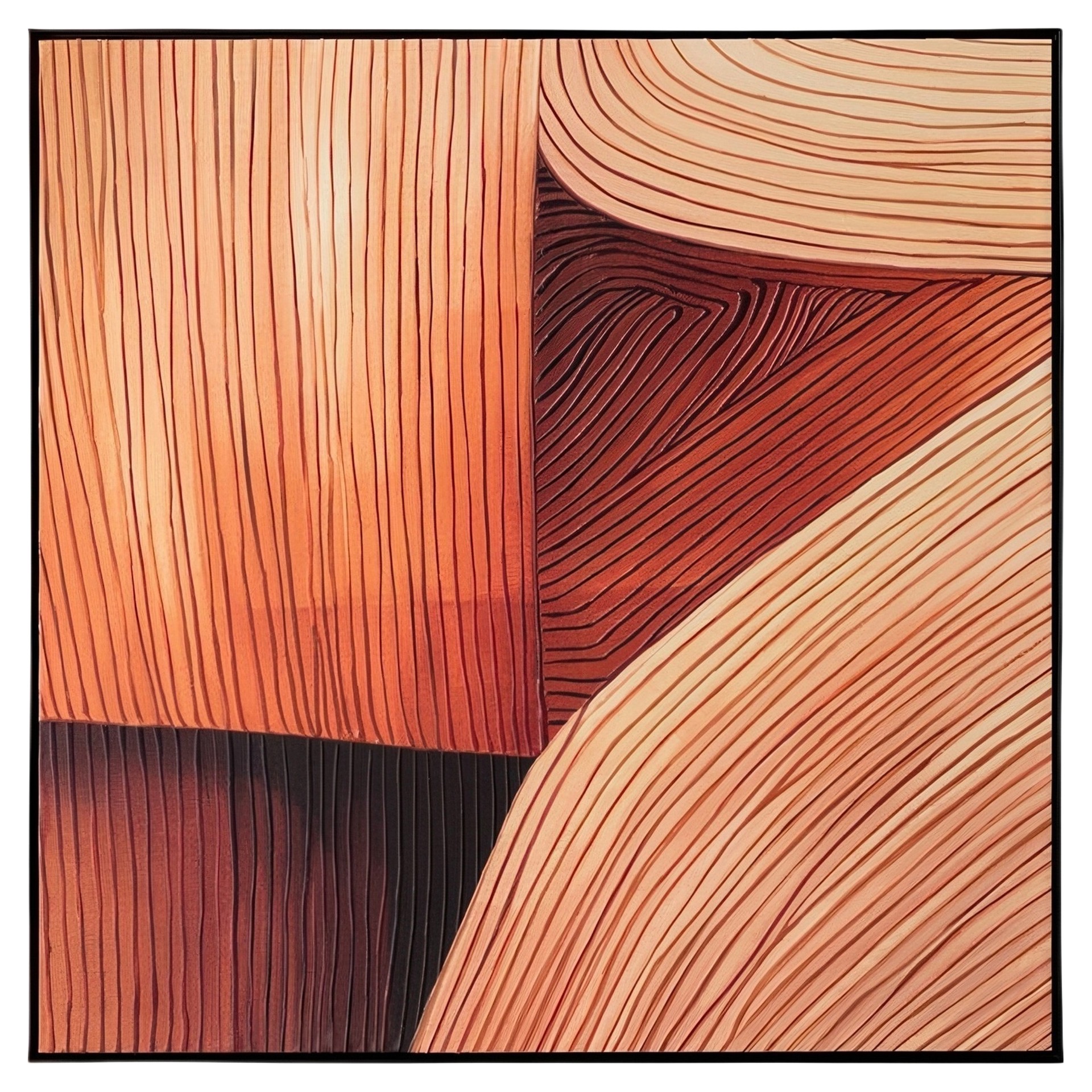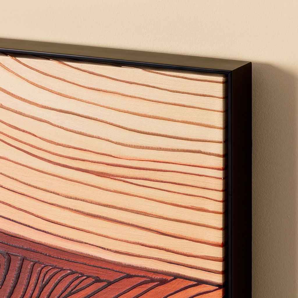 Avec ses lignes texturées et ses larges bandes de teintes chaudes, Revês de Canyon I capture la beauté brute d'un paysage de canyon.
