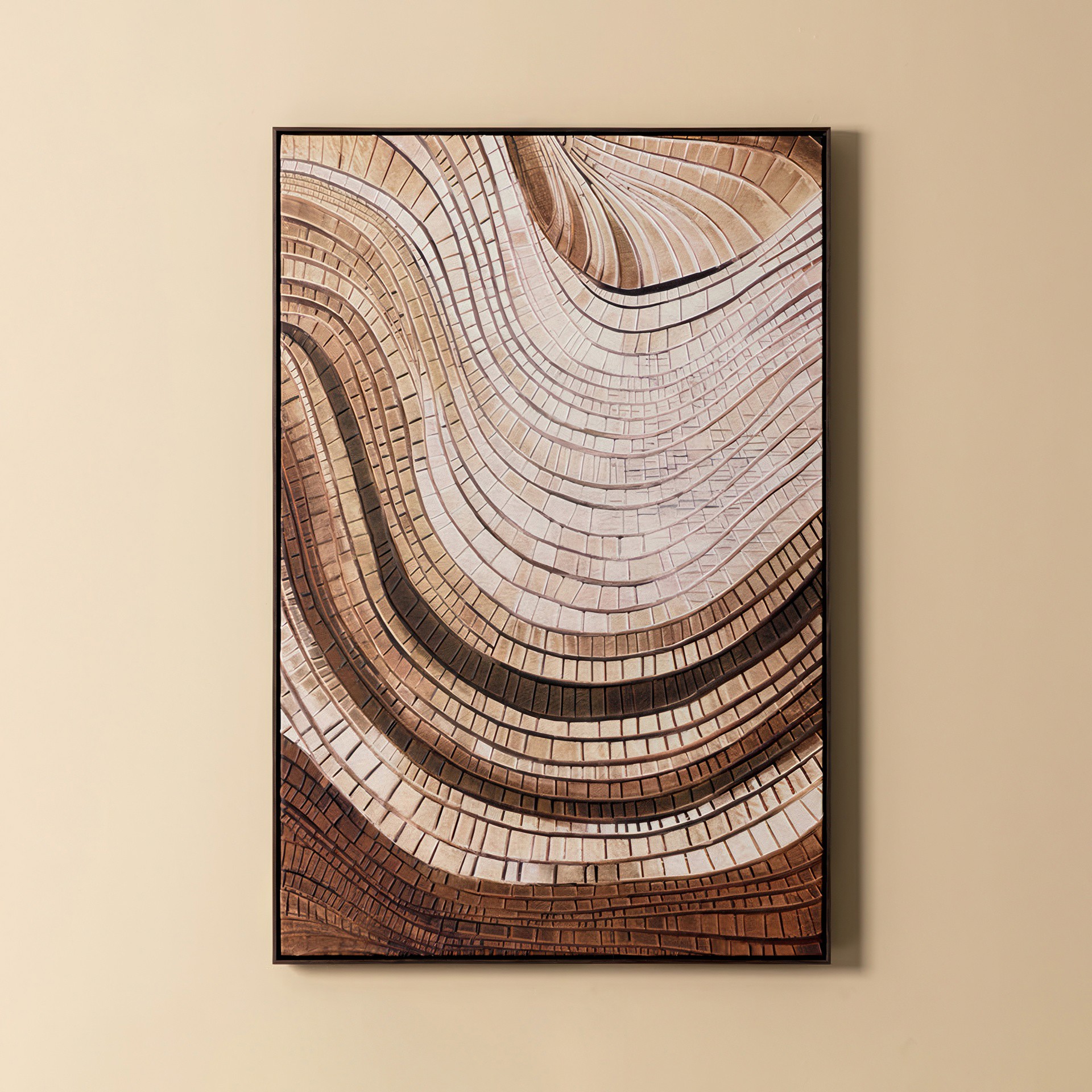 Semblable aux anneaux naturels des arbres, chaque couche est une mosaïque de bruns terreux et de textures séduisantes qui créent une présence imposante.