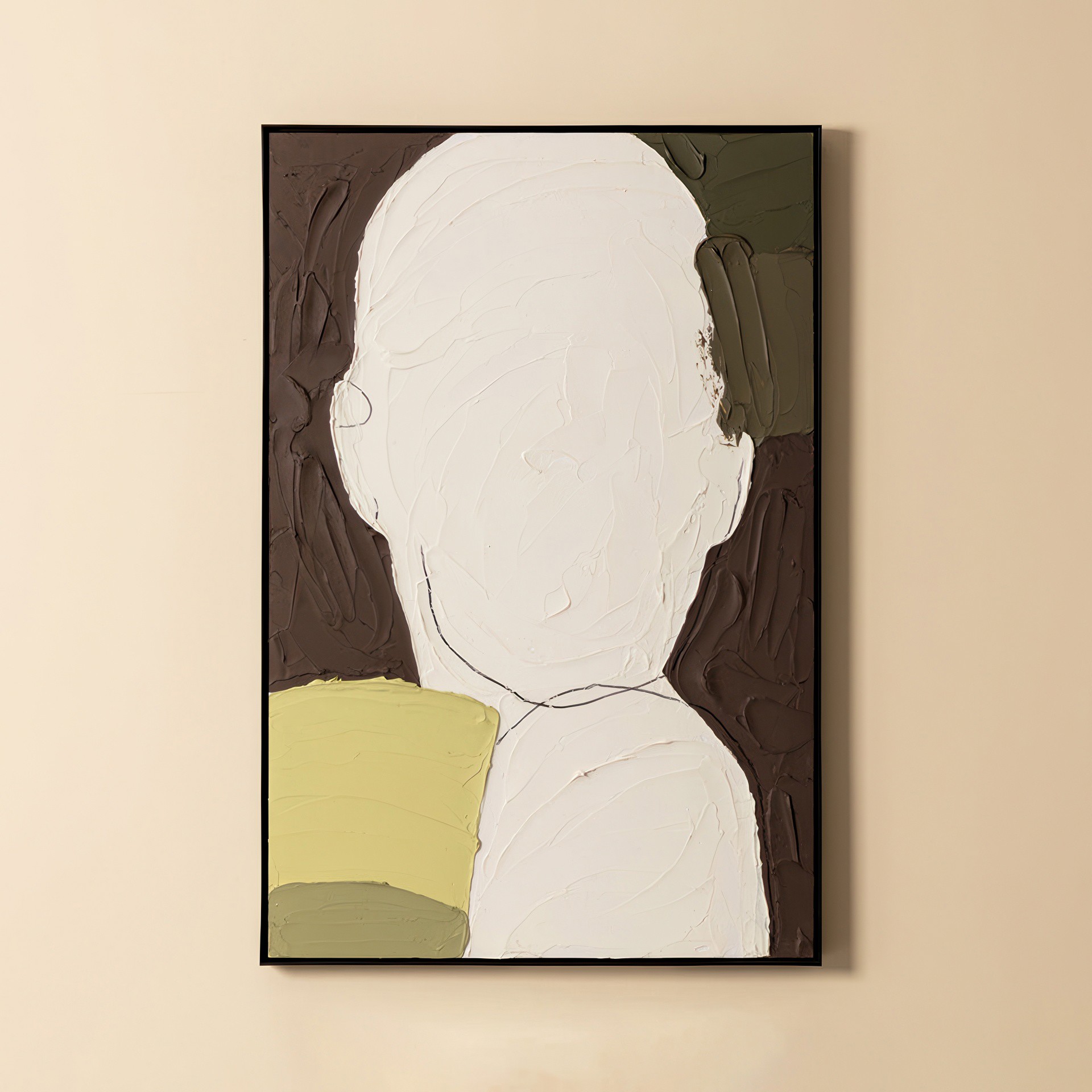 Les larges traits de peinture de Prenez la Pose I encadrent le contour délicat d'un visage dans cette oeuvre figurative abstraite.