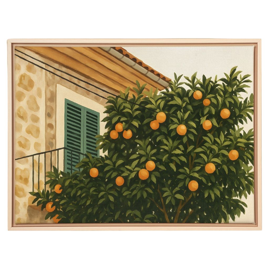 Un oranger en façade d'une maison en pierre au sud de l'Europe. L'ambiance est chaude, authentique et pleine de charme.