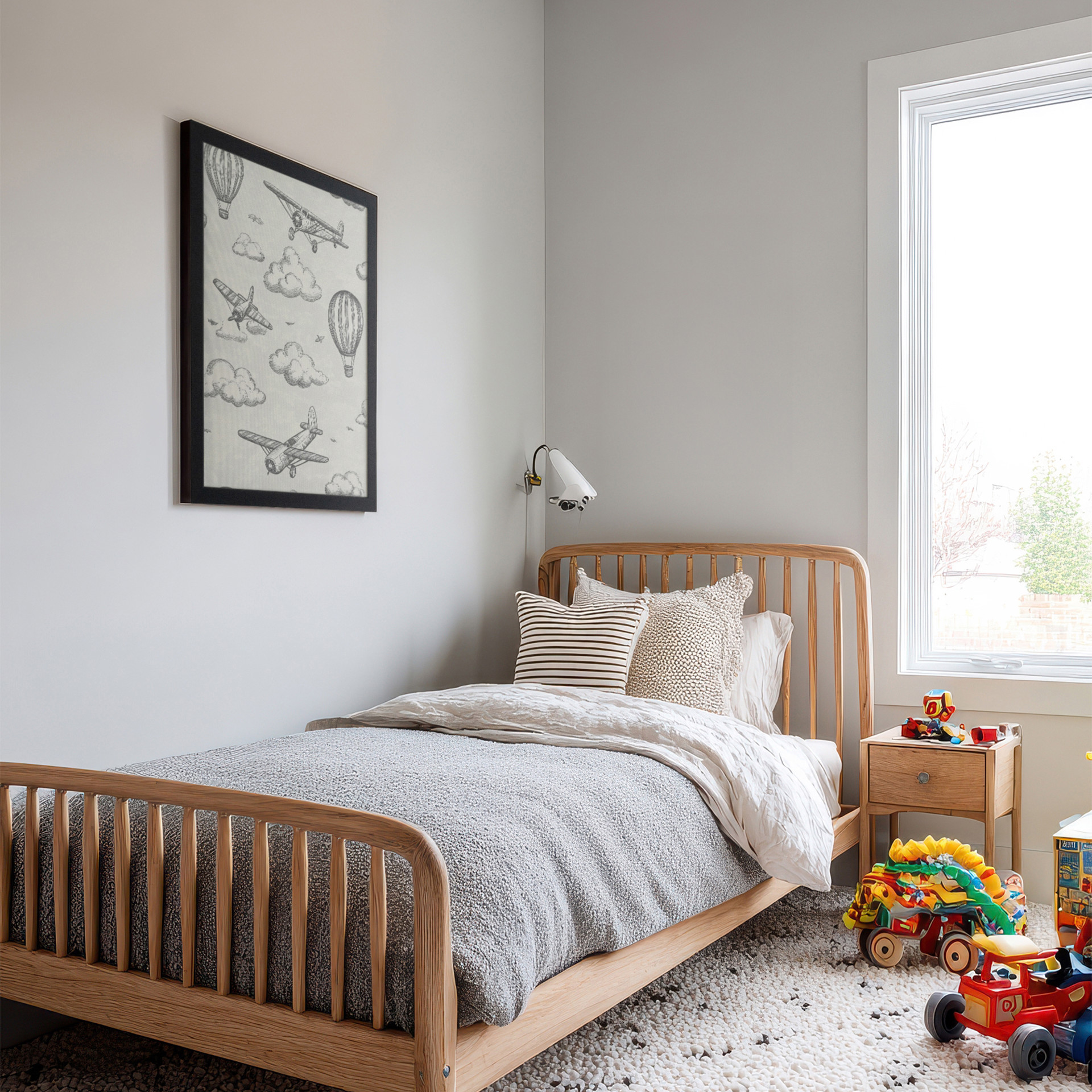 Avec son cadre noir, cette toile rigide apporte une touche moderne et élégante qui s'adapte parfaitement aux chambres d'enfant à la déco épurée ou contrastée.