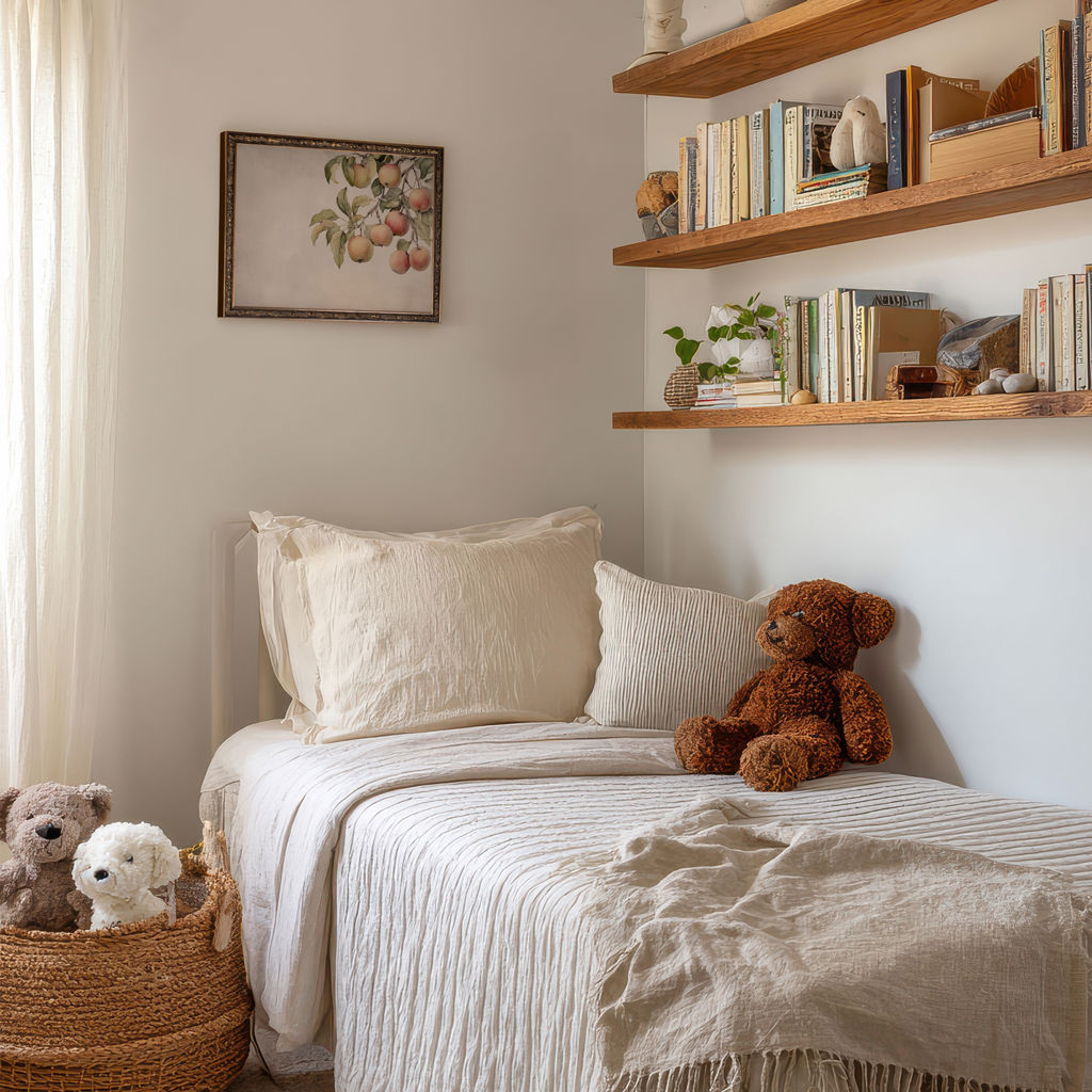 Les tons doux et naturels créent une atmosphère chaleureuse et authentique, rappelant les paysages de campagne.