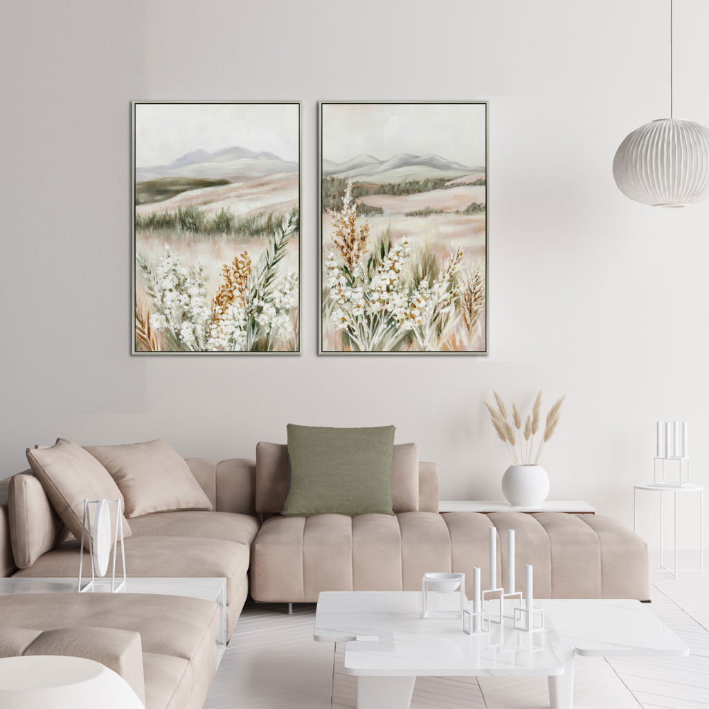 Invitez la fraîcheur des grands espaces dans votre intérieur avec « Floraison des prairies », une toile de 25 x 37 po rehaussée d’un élégant cadre argent.
