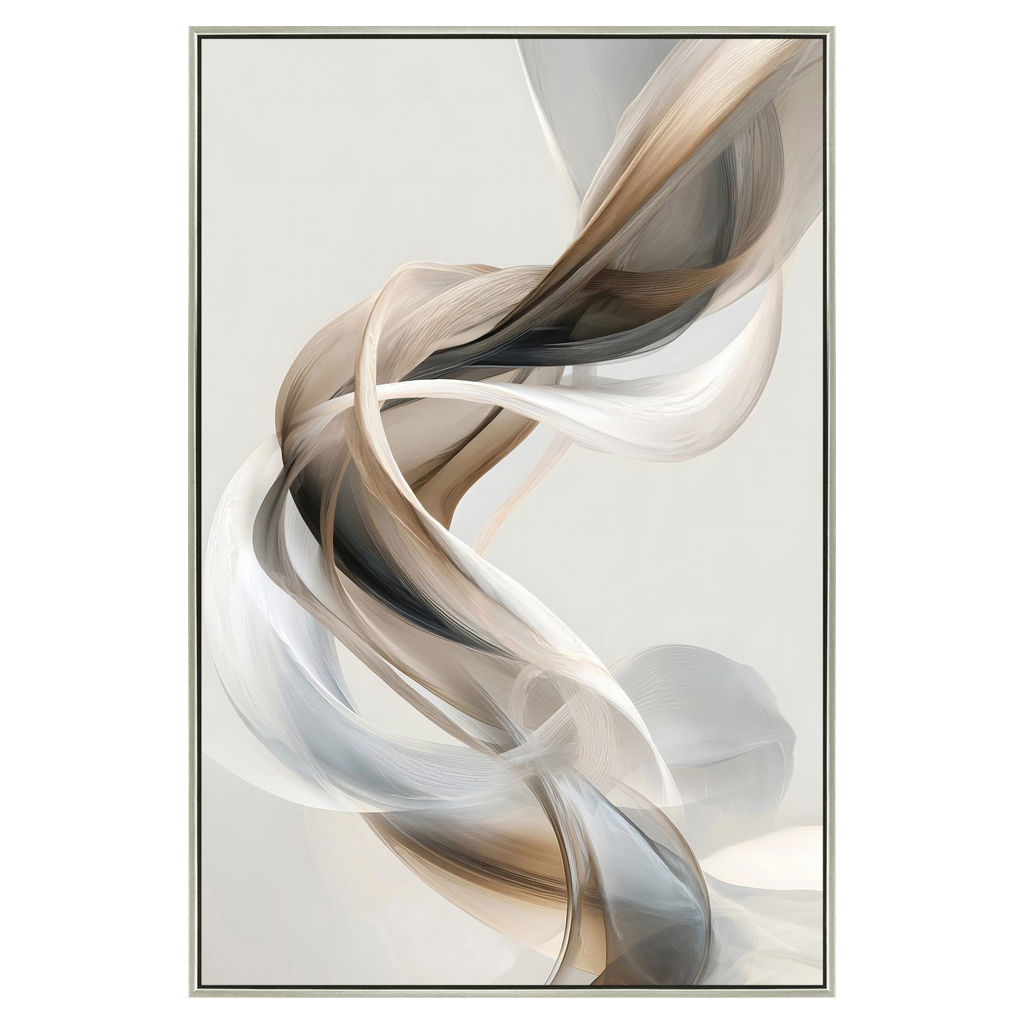 Apportez une touche d’élégance contemporaine à votre décor avec « Torsade de soie », une toile de 31 x 46 po encadrée d’un cadre argent raffiné.