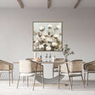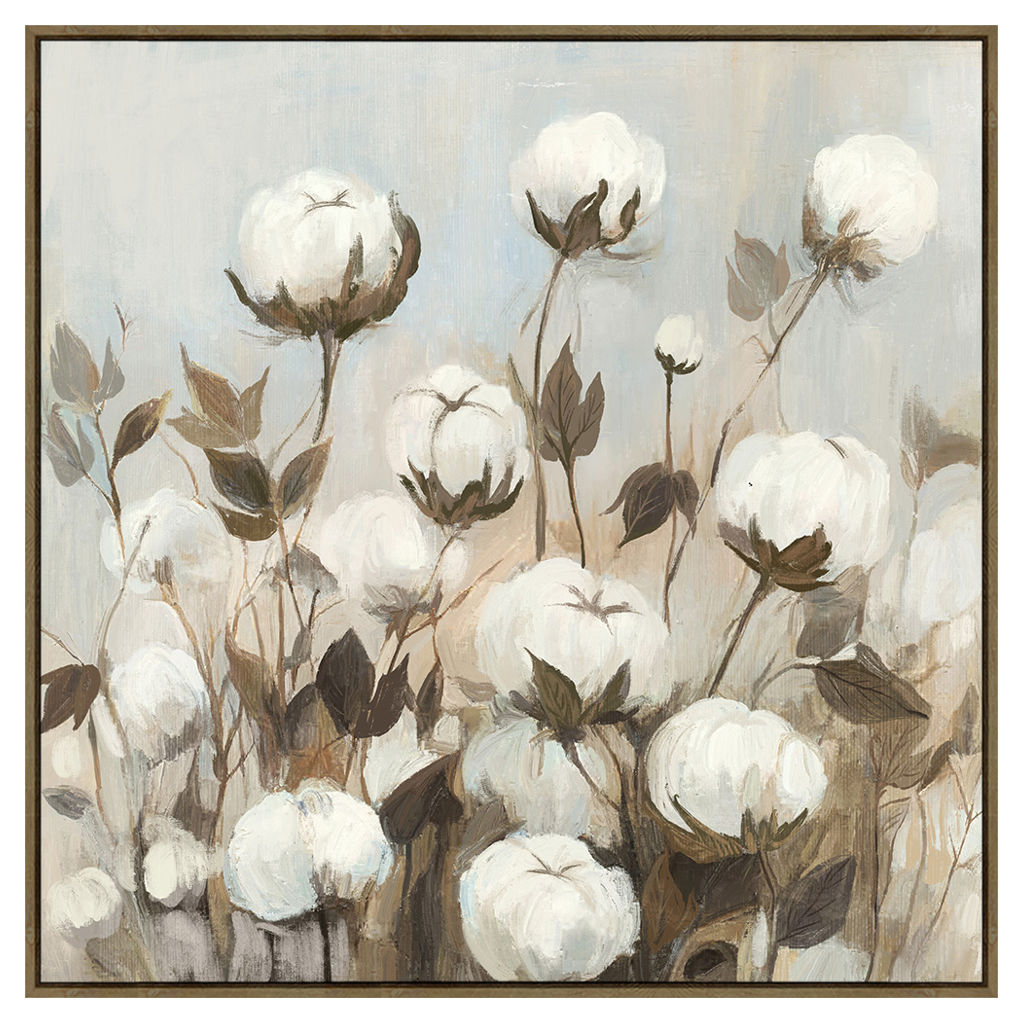 Apportez une touche chaleureuse et organique à votre décor avec « Saison du coton », une toile carrée de 33 x 33 po présentée dans un cadre brun qui souligne parfaitement ses tons naturels.