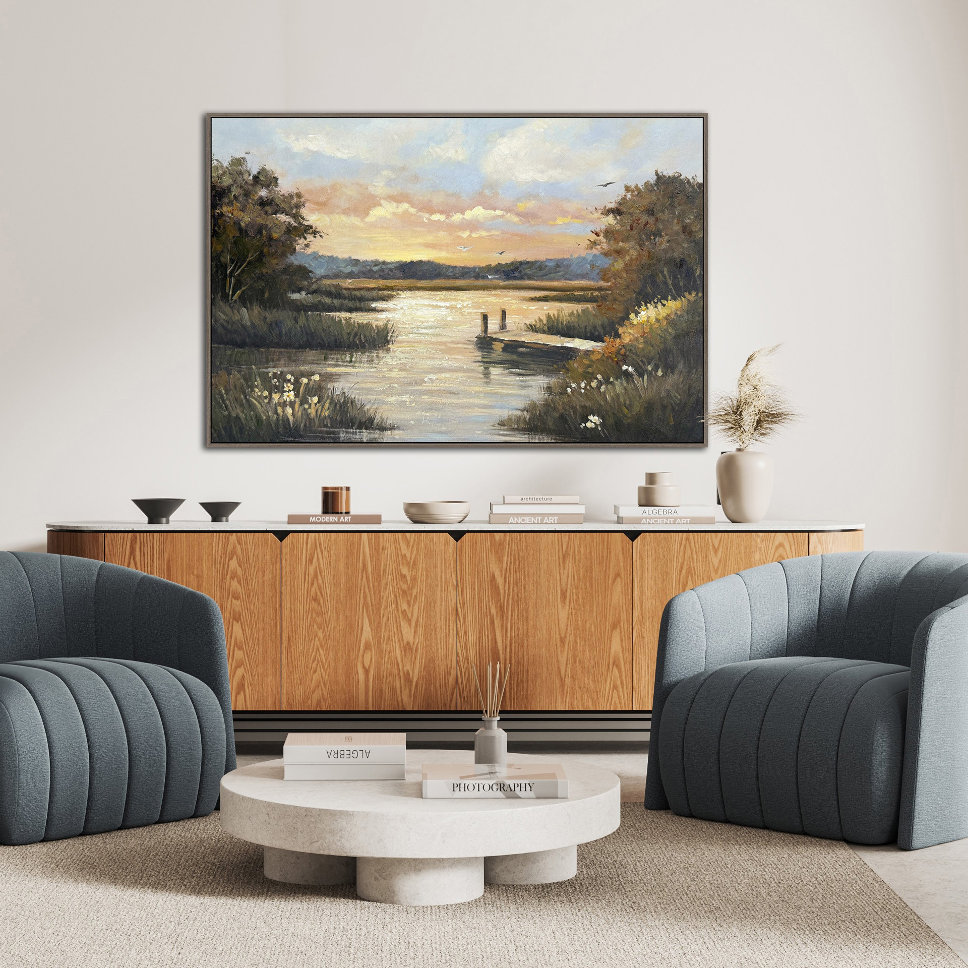 Son style pictural délicat évoque la tranquillité des paysages d’antan, parfait pour adoucir un salon, une chambre ou un espace de lecture.