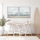 L’ensemble dégage une atmosphère légère et ensoleillée, idéale pour apporter une touche côtière et relaxante à un espace. Que ce soit dans une salle de séjour, un bureau ou un coin lecture, cette œuvre insuffle une sensation de vacances perpétuelles, invitant à la détente et à l’évasion.