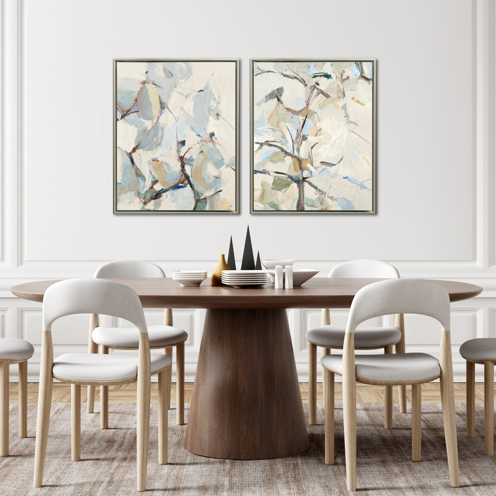 L’ensemble dégage une douceur lumineuse, parfaite pour adoucir un espace et lui apporter une note artistique subtile et moderne. Installée seule ou en duo, cette œuvre crée une ambiance élégante et apaisante, idéale pour une salle à manger, un salon ou un espace de travail raffiné.
