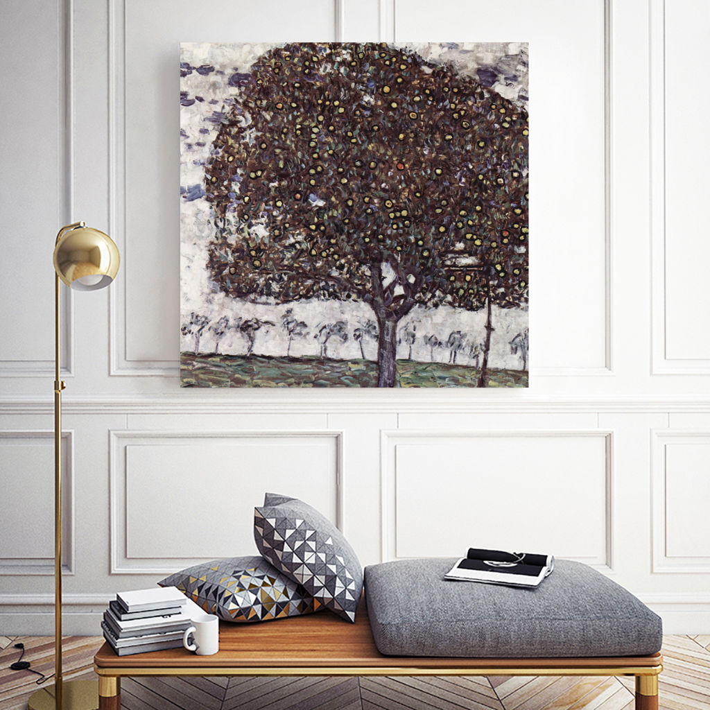 Inspirée de l’œuvre Der Apfelbaum (1916) de Gustav Klimt, cette reproduction 36 x 36 po décorative séduit par ses formes expressives et sa palette riche, typiques de l’art du début du XXe siècle. Elle apporte caractère, profondeur et une dimension artistique forte à votre décor.