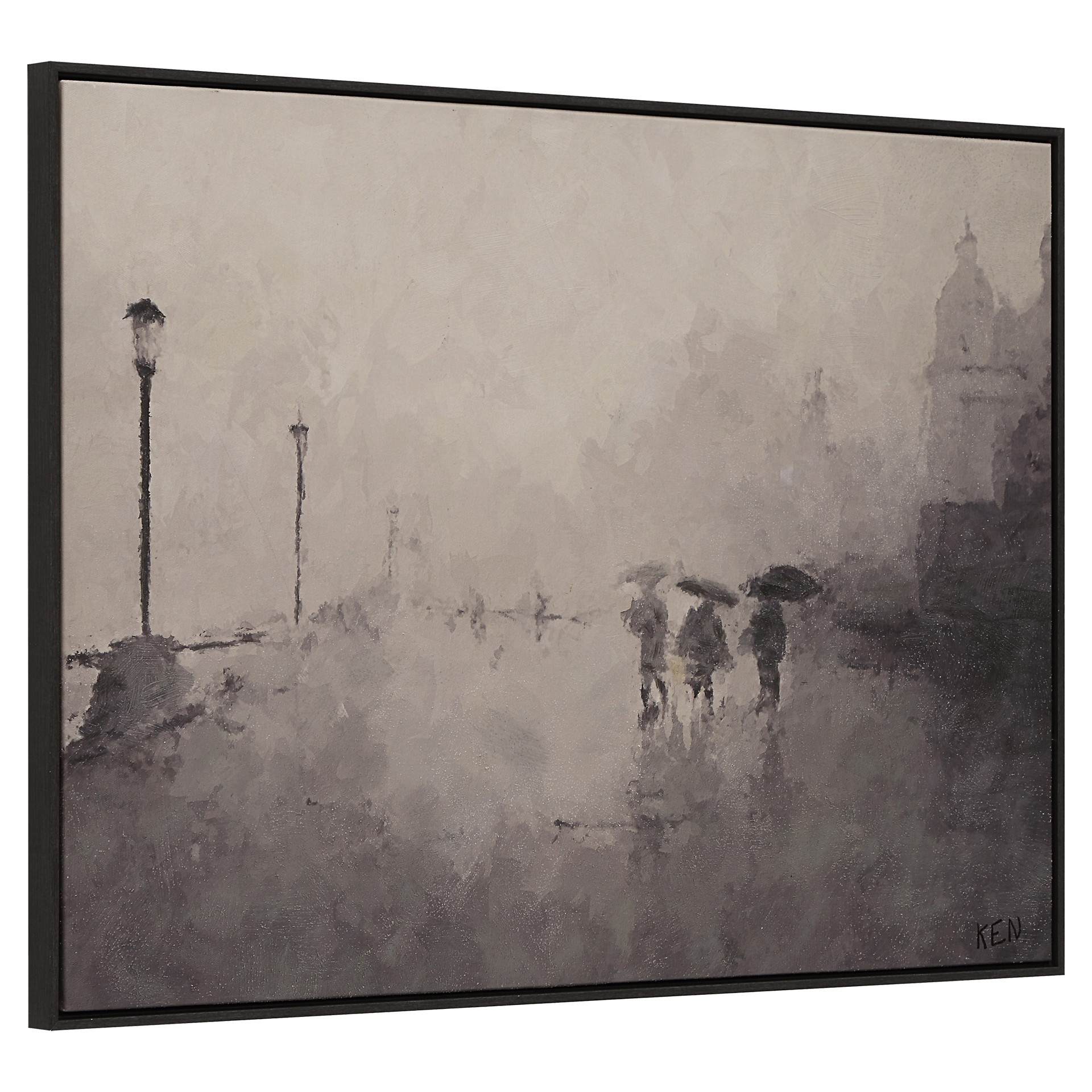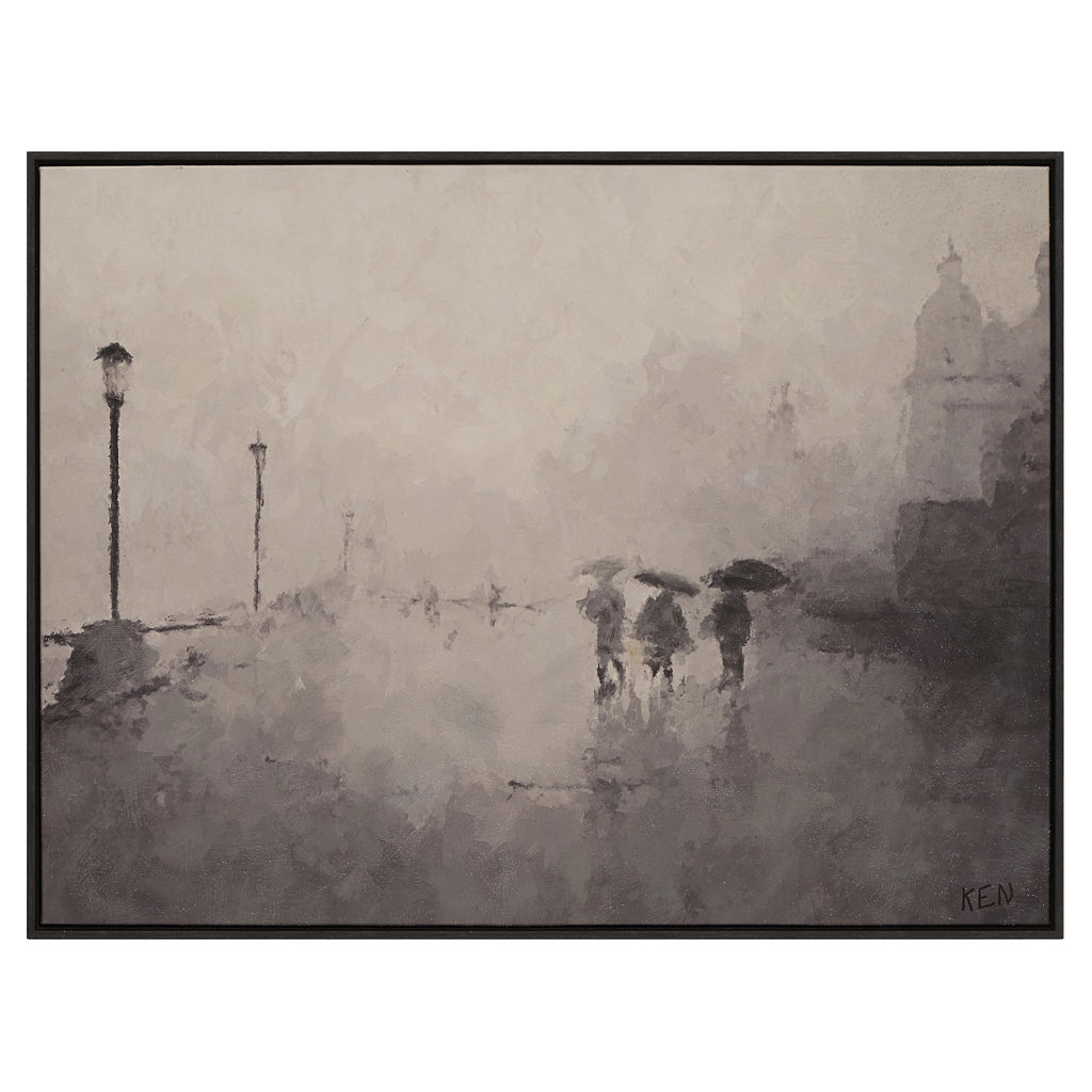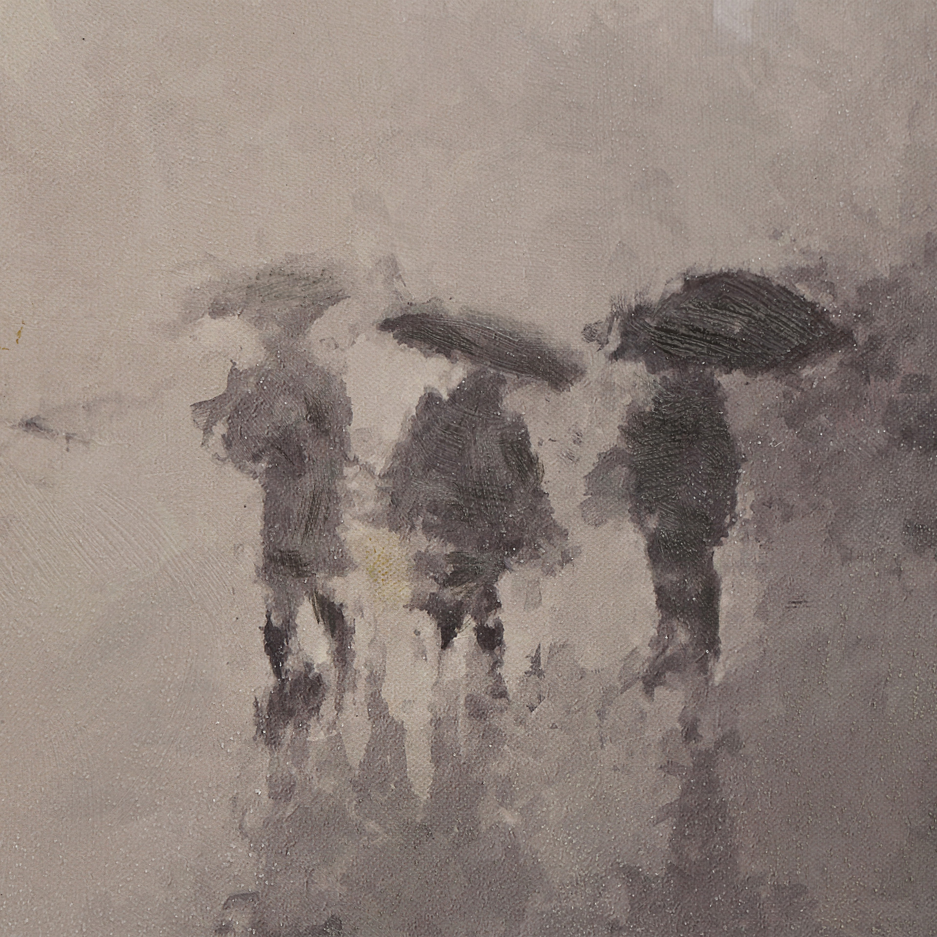 La toile Ambra invite à la rêverie avec son paysage brumeux et pluvieux, évoquant des histoires inédites. Réalisée dans des tons doux et ombragés, et rehaussée d'une texture peinte à la main sur un coton-lin imprimé, elle suscite la réflexion tout en captivant le regard.