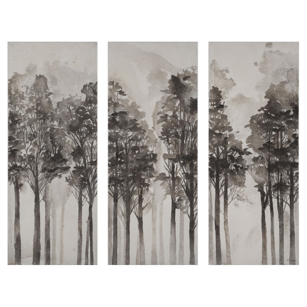 Lorsqu'un espace appelle une installation artistique marquante, il est temps de faire appel à ce triptyque de toiles murales exceptionnelles. Mettant en scène une somptueuse sélection d'arbres parmi les plus majestueux de la nature, ce trio est peint à la main selon une technique texturée imitant l'aspect feuillu de son sujet.