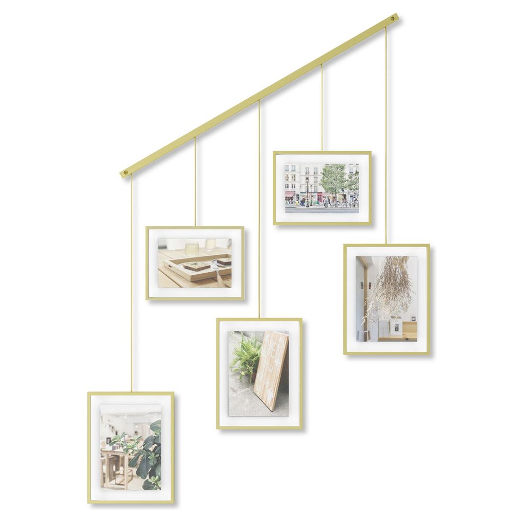 Les supports avec les cadres sont suspendus au rebord, ce qui permet de les déplacer pour créer diverses dispositions. Ses propriétés de suspension horizontale flexibles font de Exhibit un excellent ajout à votre escalier en raison de sa capacité à être suspendu en angle.