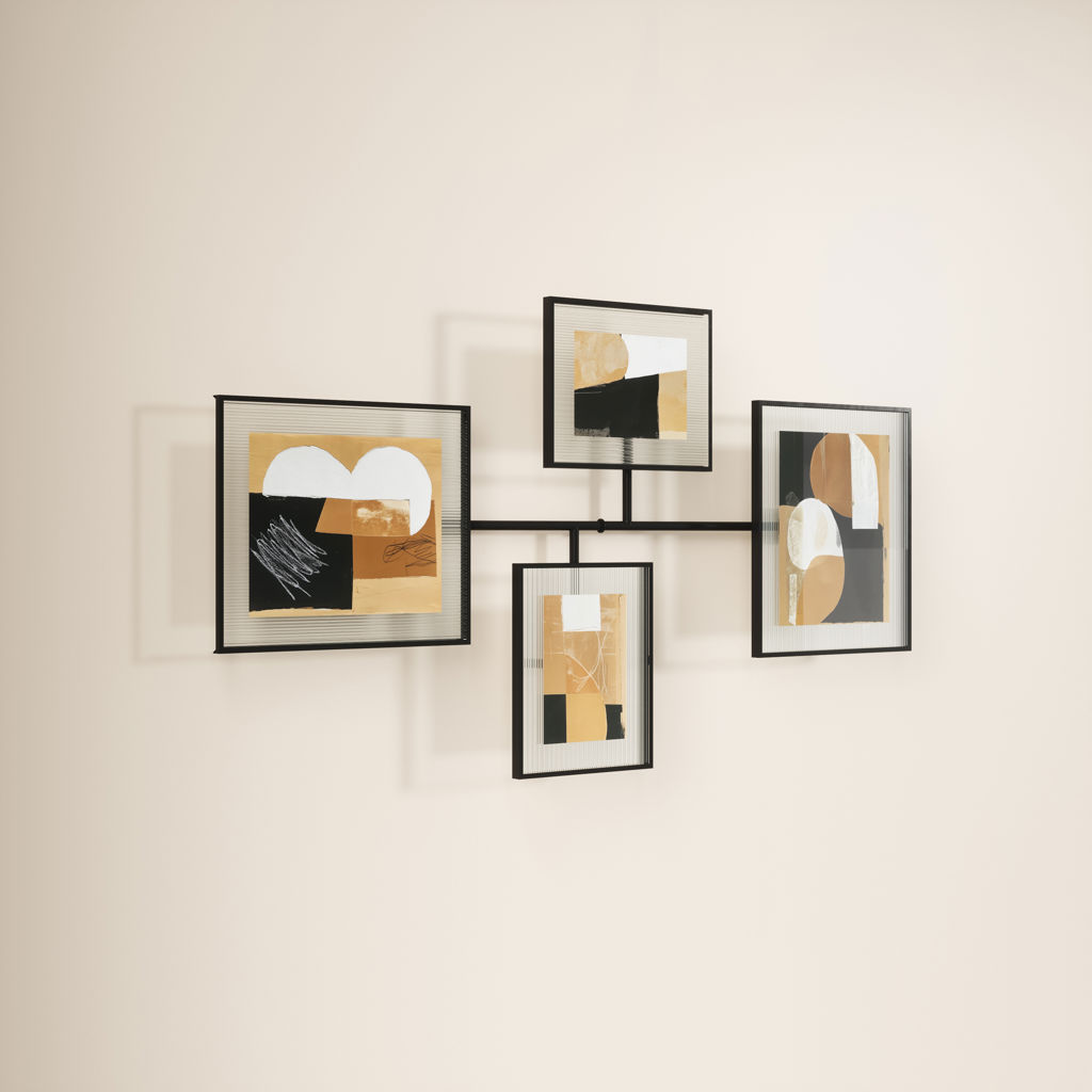 Le cadre comprend quatre cadres reliés entre eux. Il peut contenir deux photos ou oeuvres d'art de 8x10 et deux de 5x7, donnant à votre espace un aspect raffiné et soigneusement choisi.