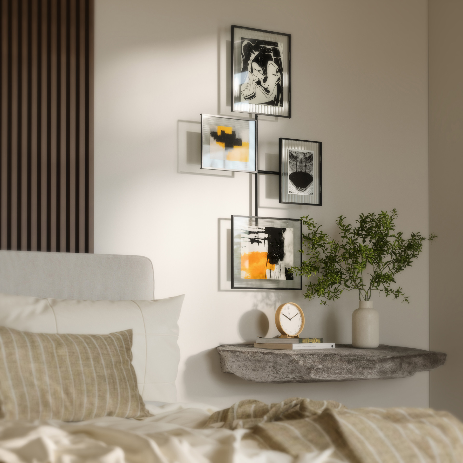 Conçue pour la polyvalence, la galerie peut être accrochée à la verticale ou à l'horizontale, et chaque cadre peut accueillir des images en orientation portrait ou paysage.