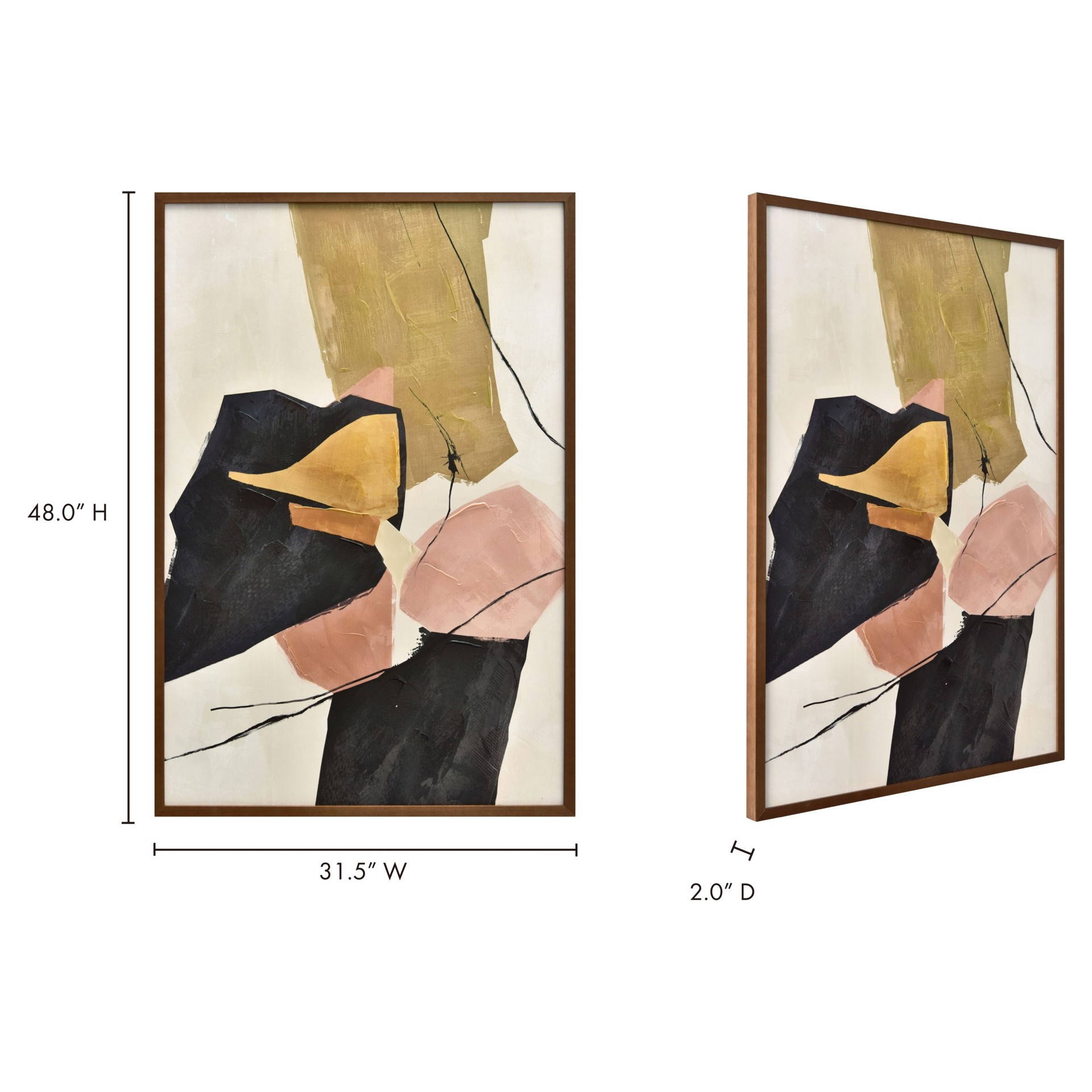 Inspirés des années 60, les riches tons ambre, rose poudré et olive doux d'Anni soulignent les formes abstraites ludiques qui sont ancrées dans le fond crème et noir. La finition marron chaud du cadre en pin massif souligne la présentation avec une touche vintage.