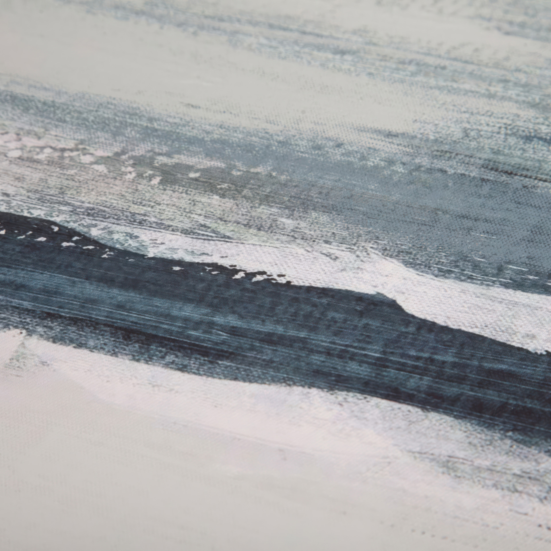 Shoreline dépeint un tournant de marée avec une qualité picturale qui ajoute une douceur à cette force de la nature. Les tons bleus froids rencontrent des couleurs plus sombres, créant du mouvement pour le spectateur.