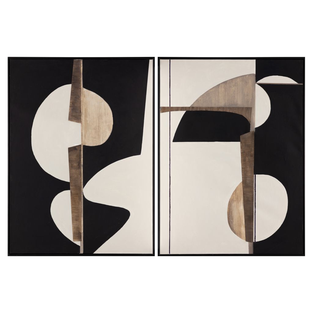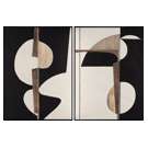 Good Neighbours est une histoire de formes abstraites et de tons neutres, des touches de brun associées aux couleurs unies du noir et du blanc ajoutent de la profondeur et de la dimension à chaque partie du diptyque.