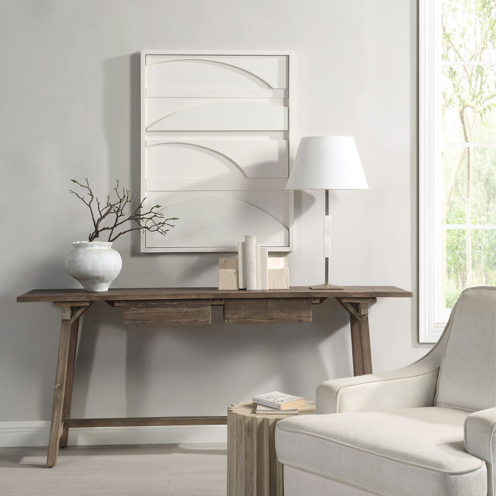 Fabriqué à partir de bois et de MDF astucieusement superposés, il présente un élégant fini blanc mat pour un effet minimaliste qui convient à n'importe quel décor contemporain.