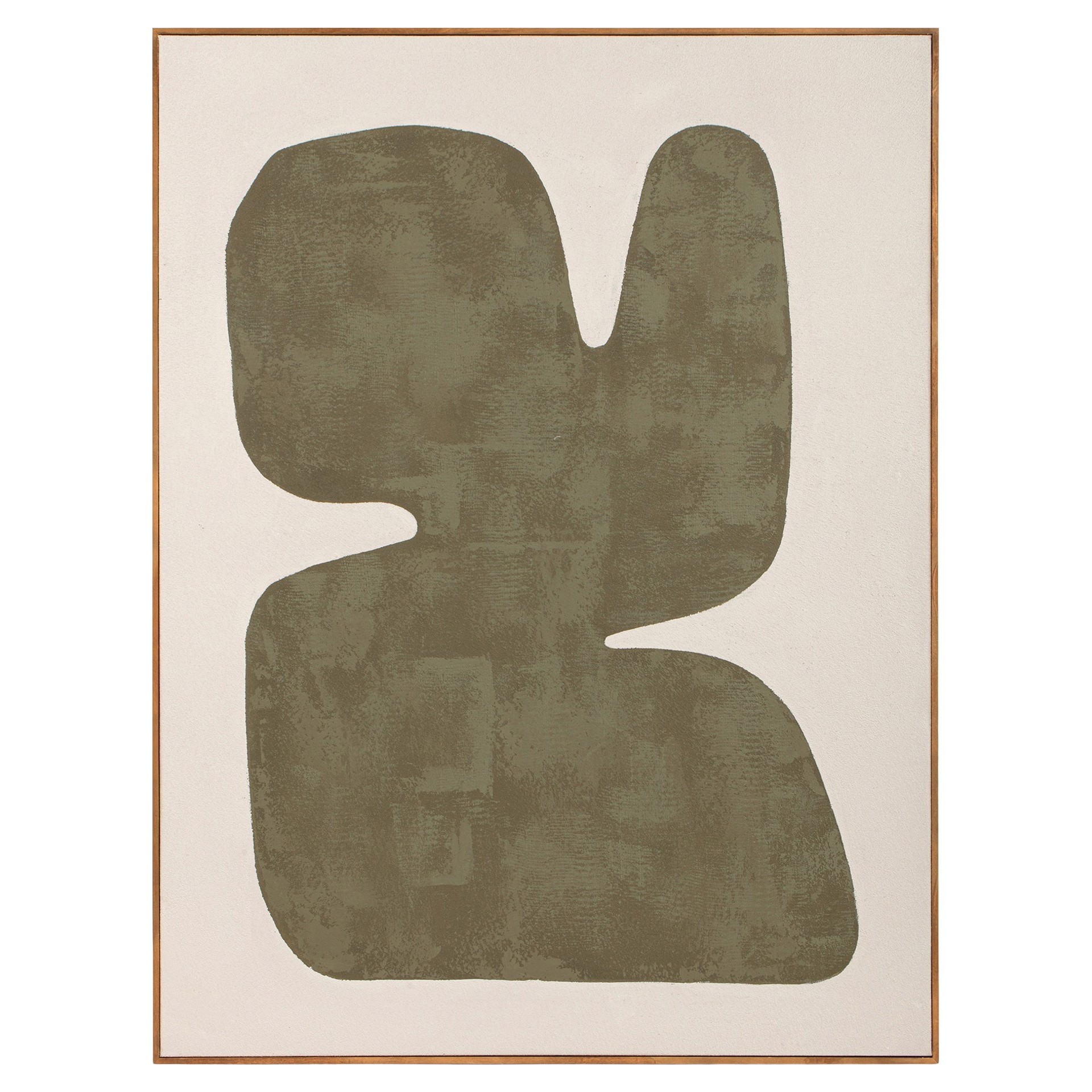 Cette œuvre exceptionnelle fait le lien harmonieux entre l'art contemporain et l'élégance accessible. De riches teintes vert sauge dansent délicatement sur un fond blanc cassé, créant un équilibre visuel captivant et apaisant.