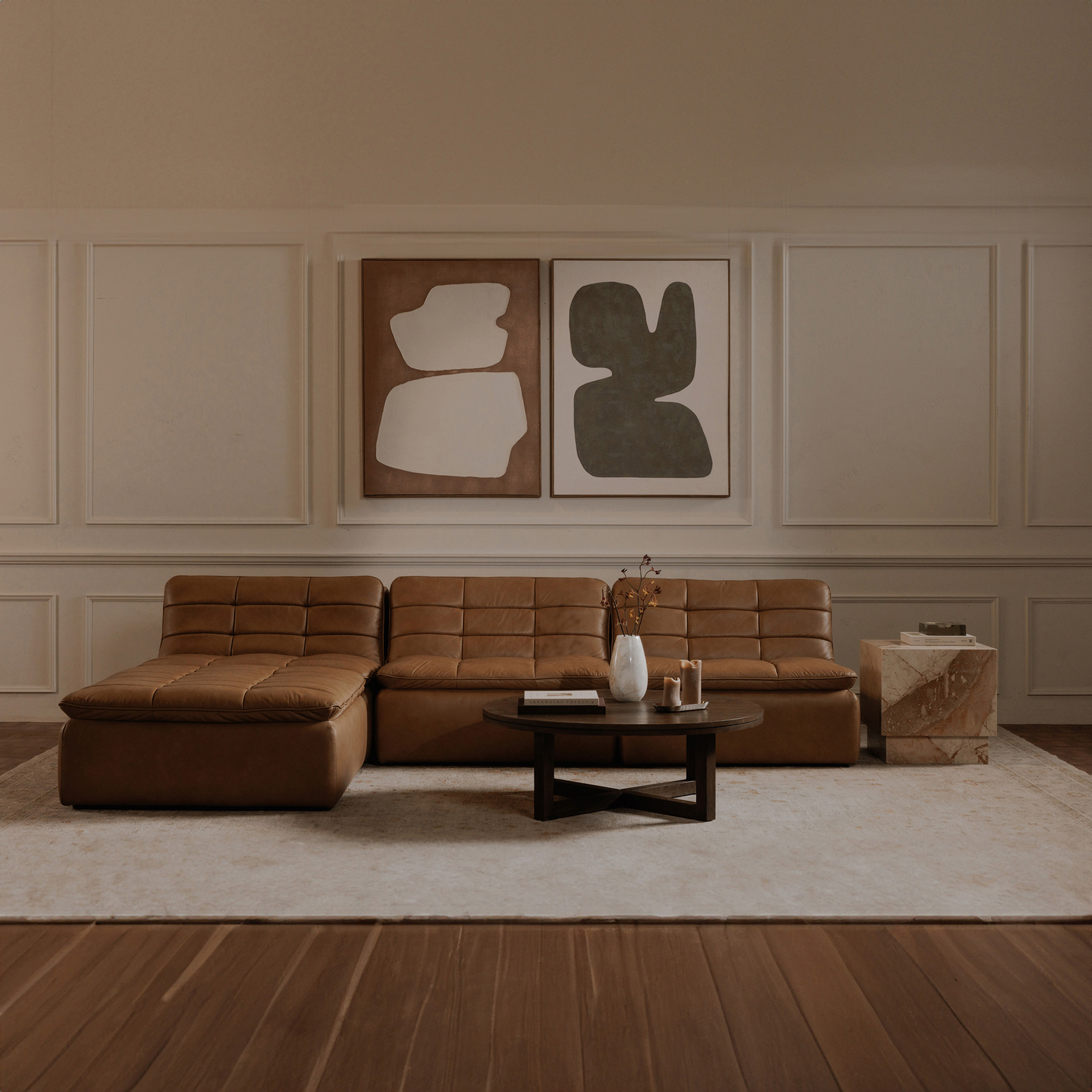 "Soha" présente une composition abstraite de forme libre qui stimule l'imagination tout en préservant une sérénité naturelle. Le cadre en pin massif apporte une chaleur authentique et un charme naturel qui sublime l'ensemble.
