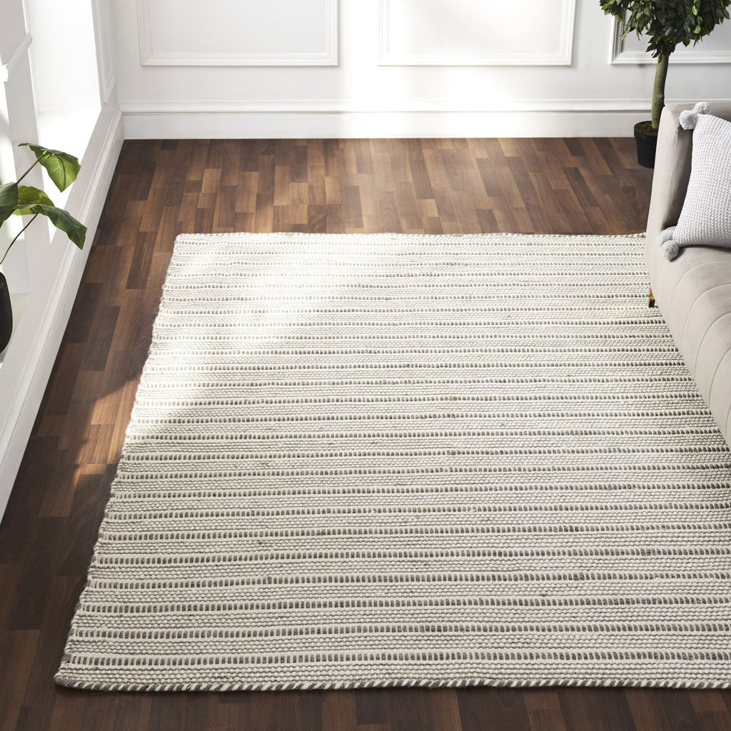 Le motif dans toute sa puissance est à l'honneur dans ce tapis. Des tons subtils d'ivoire et de pierre s'associent pour créer une œuvre cohérente qui mettra en valeur tout intérieur de style contemporain ou classique. Tissé à la main et offert en six tailles, le mélange de laine et de coton assurera le confort de la pièce quelle que soit sa dimension.