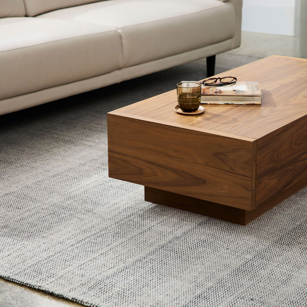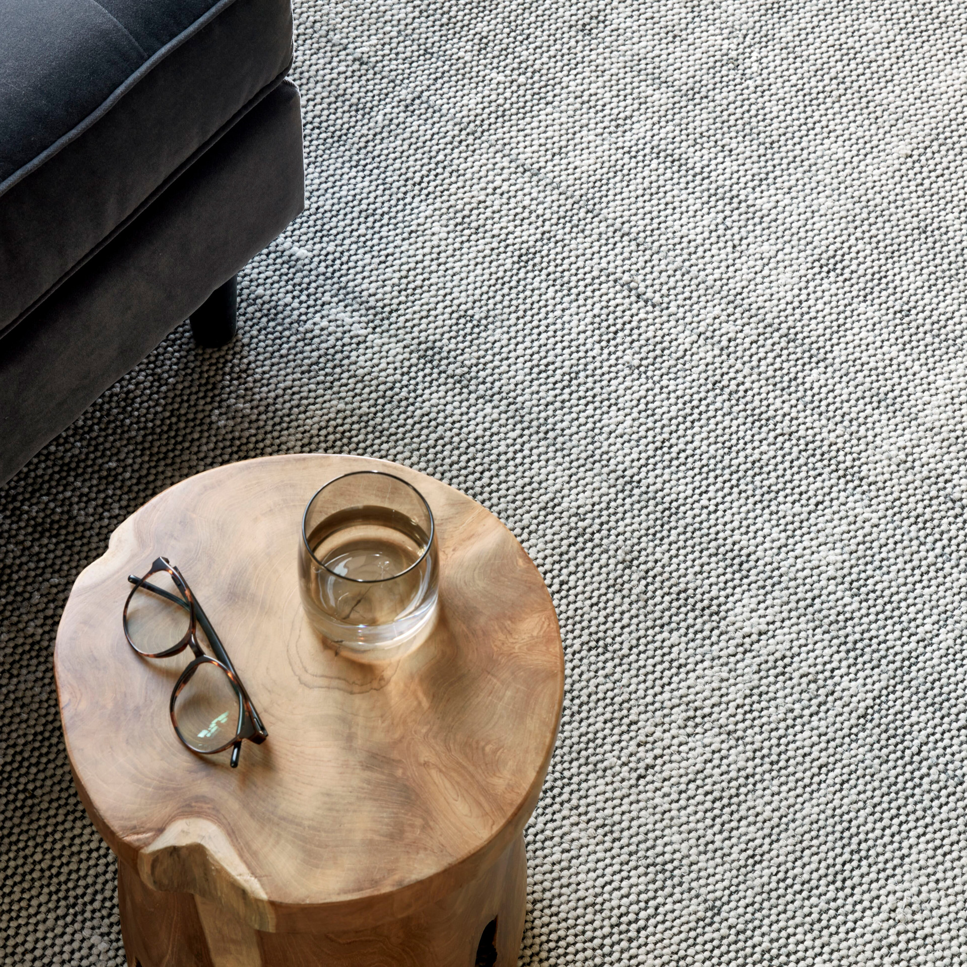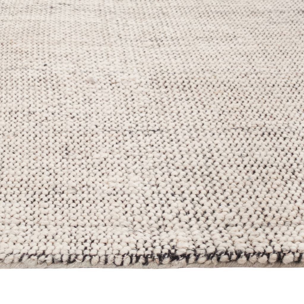 Ce tapis tissé est composé de gris et de beiges doux entrelacés d´un généreux fil noir.