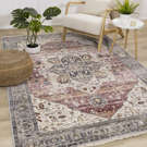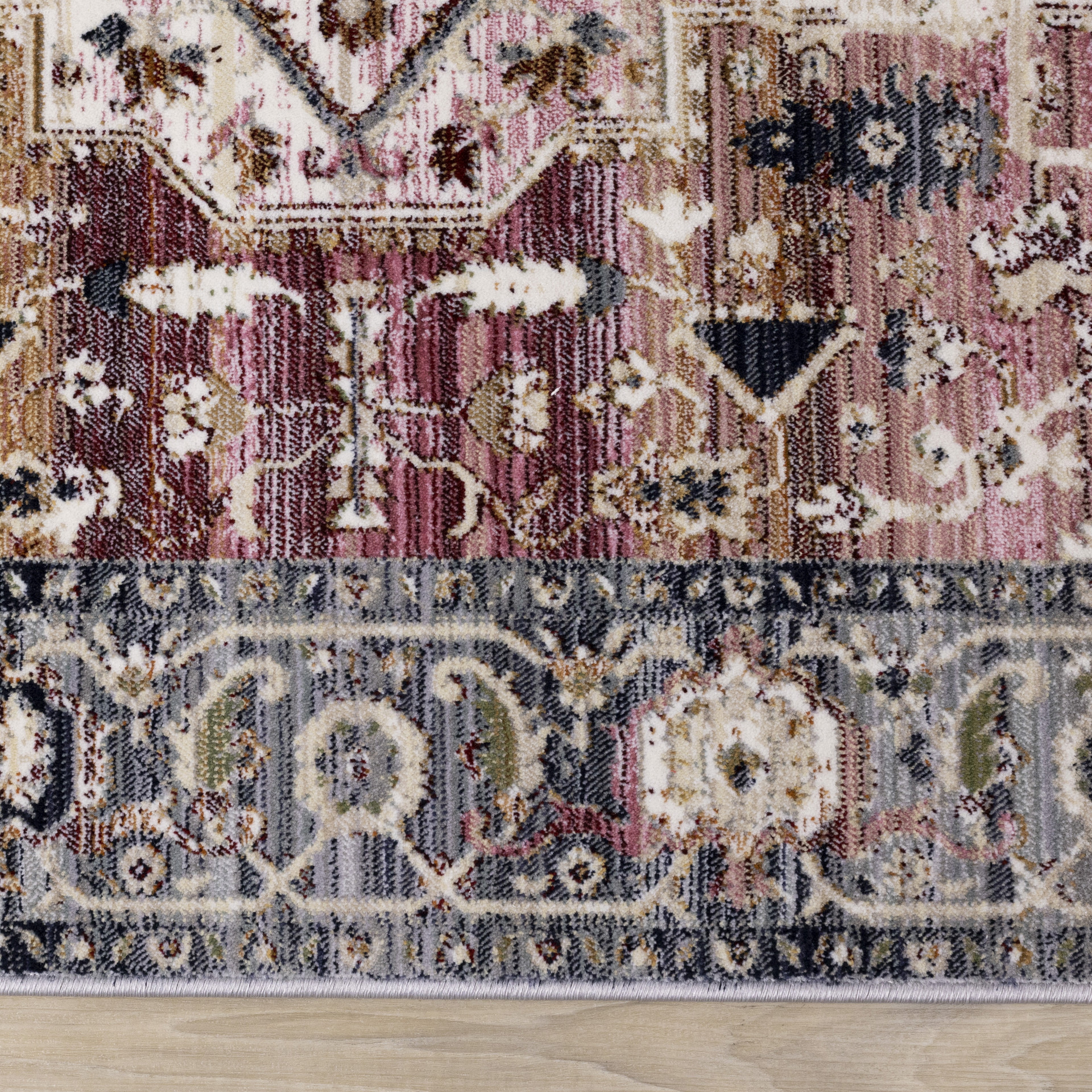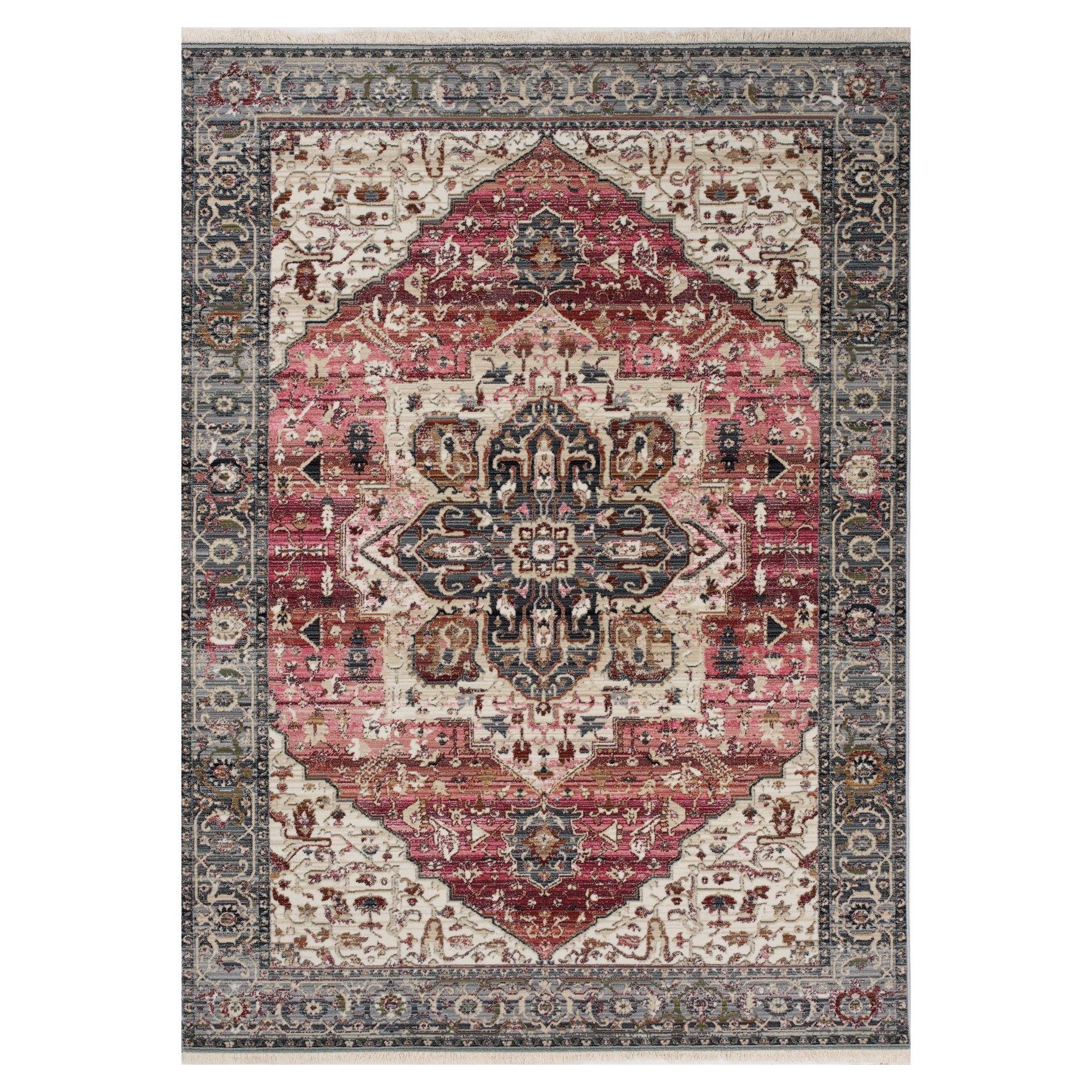 Bleu et rose, rouge et orange ; ces couleurs et bien d'autres encore harmonisent les motifs ornés des dessins de la collection de tapis Serene. Le crème et le beige en couleurs de fond forment à chaque extrémité du tapis une courte frange très tendance.