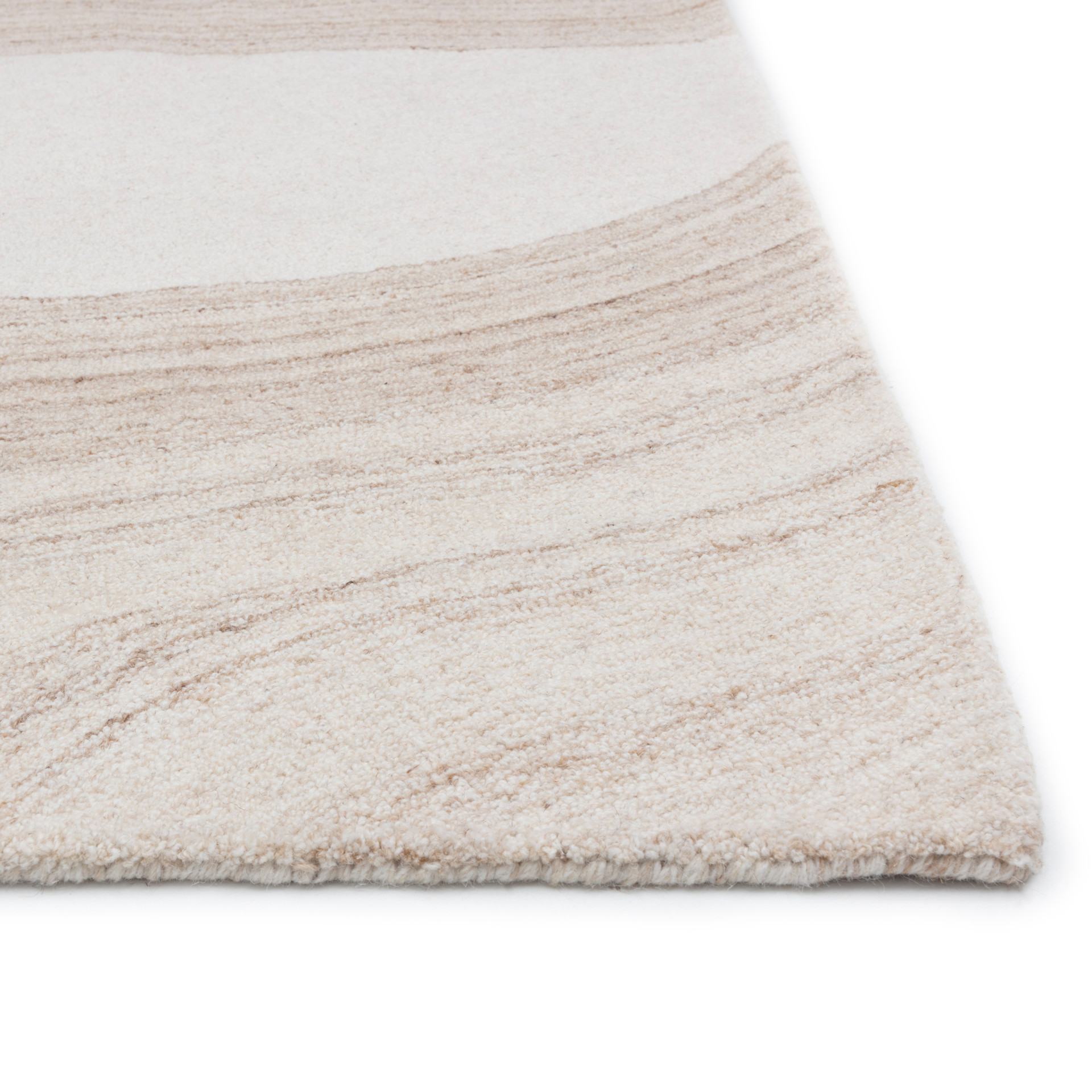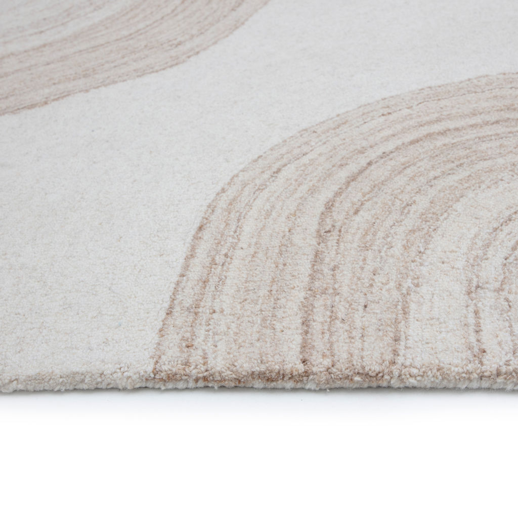 Le magnifique design du tapis Sanibel présente des courbes fluides qui imitent les couches complexes et les variations de tons de la nature. Les fils de laine touffetés à la main créent une texture riche et confortable.