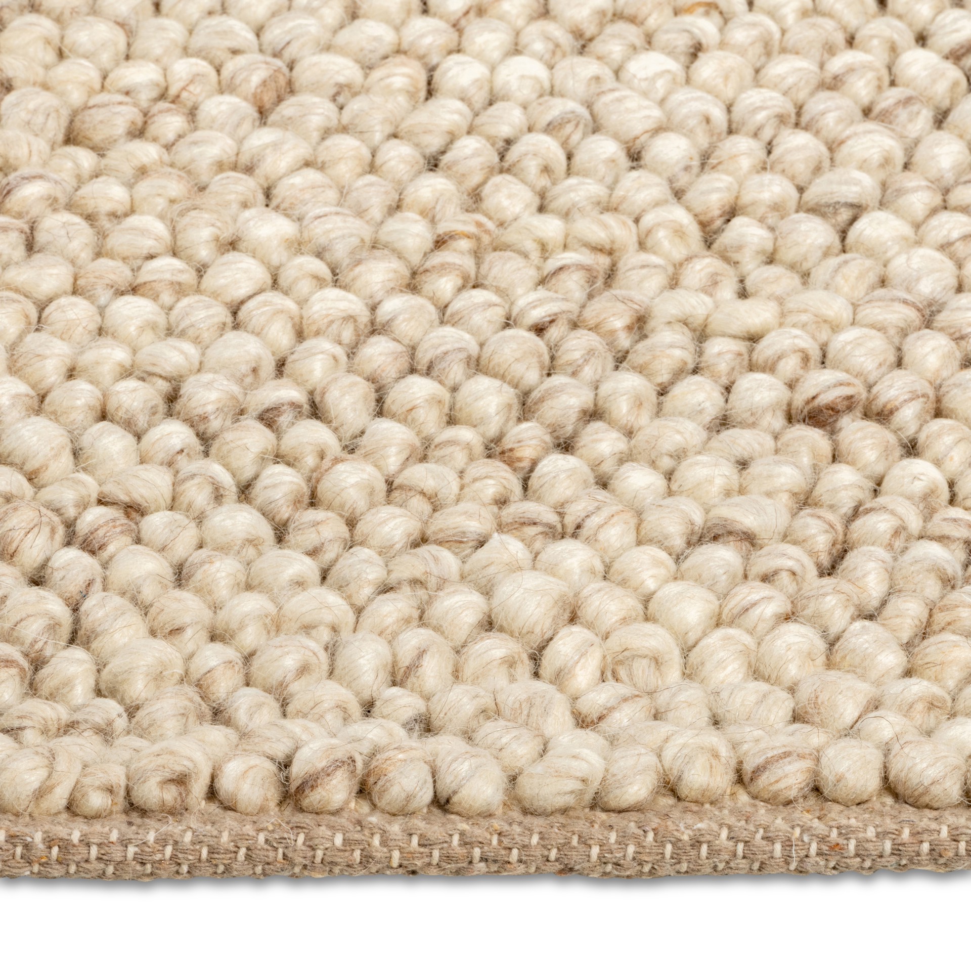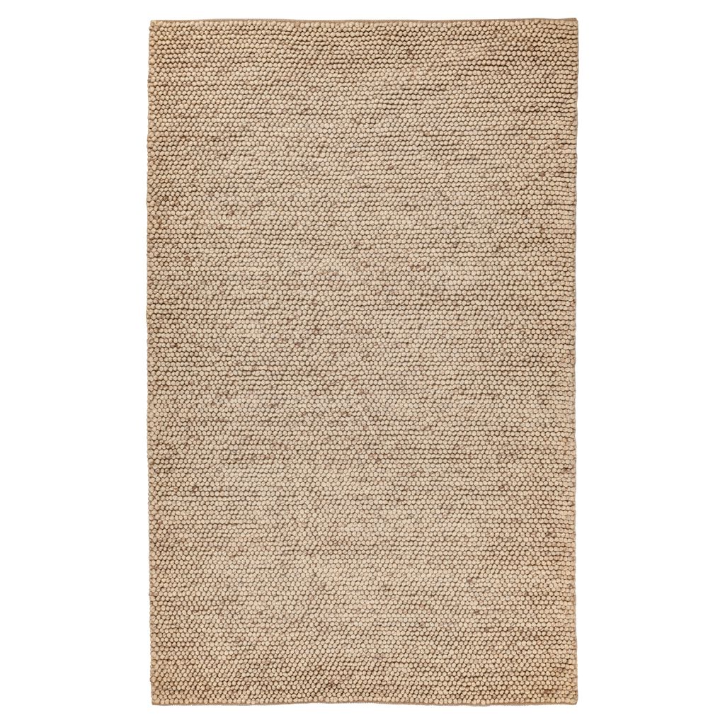 Ce tapis présente une texture luxueuse avec une surface moderne effet galet, confectionné en laine douce, lui conférant une allure haut de gamme.