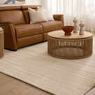 Ce tapis en laine tufté main, couleur crème douce, allie durabilité et élégance sereine.