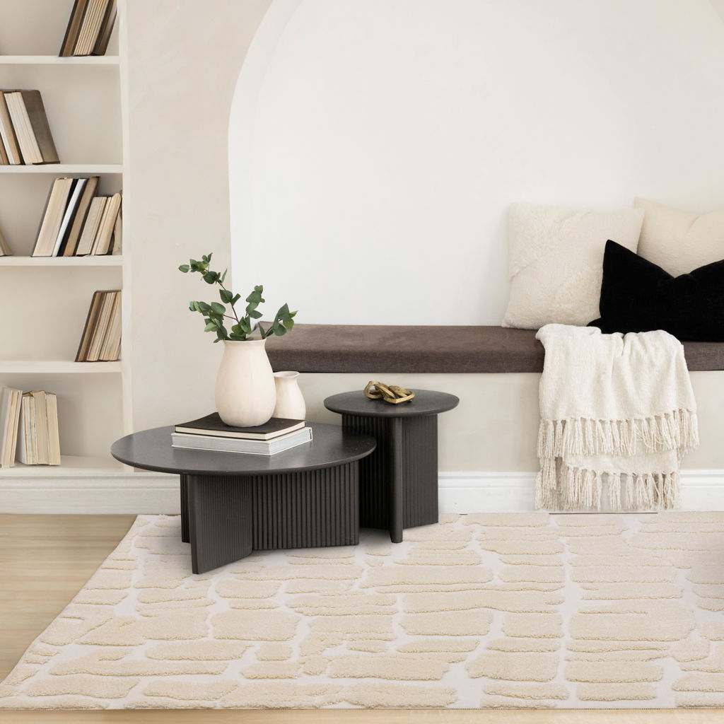 La collection Mareeba présente une construction haute-basse saisissante, créant une esthétique audacieuse et moderne. Les différentes hauteurs de poils ajoutent de la profondeur et de l'intérêt, tandis que la texture douce rehausse la pièce avec chaleur et attrait tactile. Ce tapis est fait de polyester, un matériau résistant aux taches, qui ajoute de la dimension et de la durabilité à ses motifs.