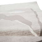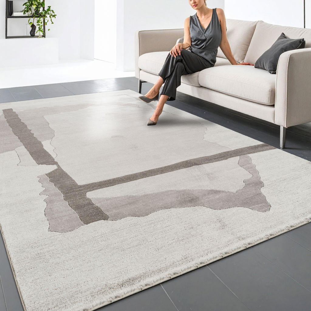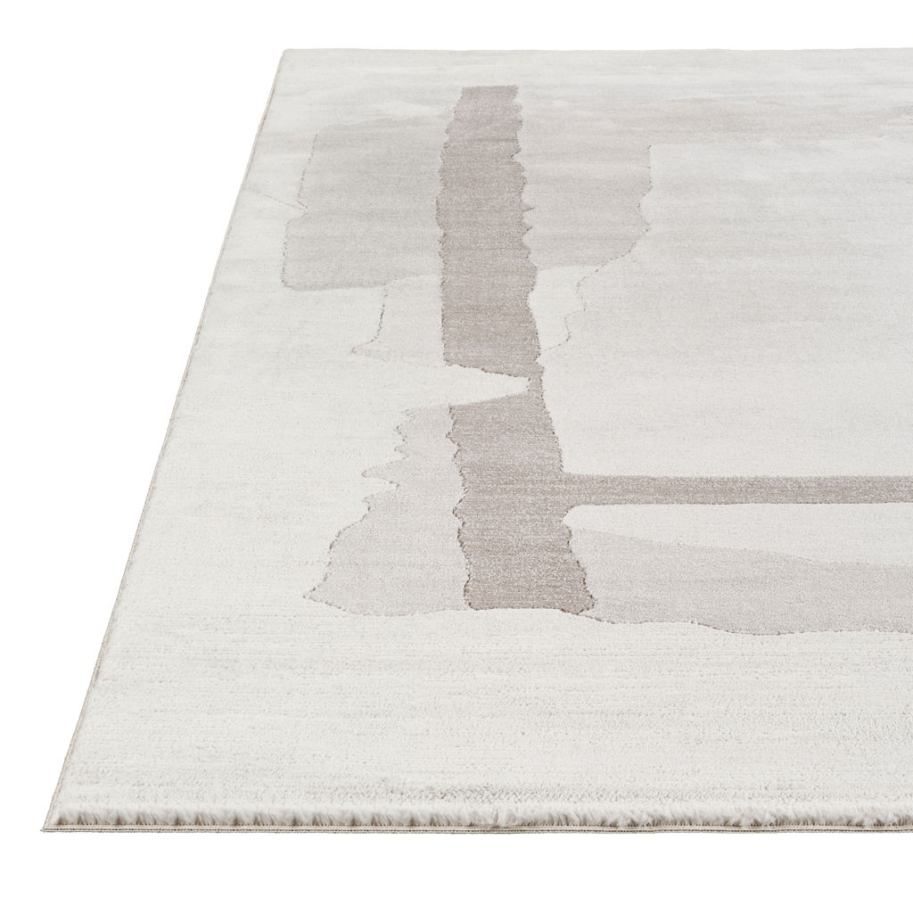 Ce tapis d'art abstrait se distingue par ses formes organiques et ses lignes graphiques dans des tons doux de beige et de brun, offrant une pièce maîtresse moderne et sophistiquée.