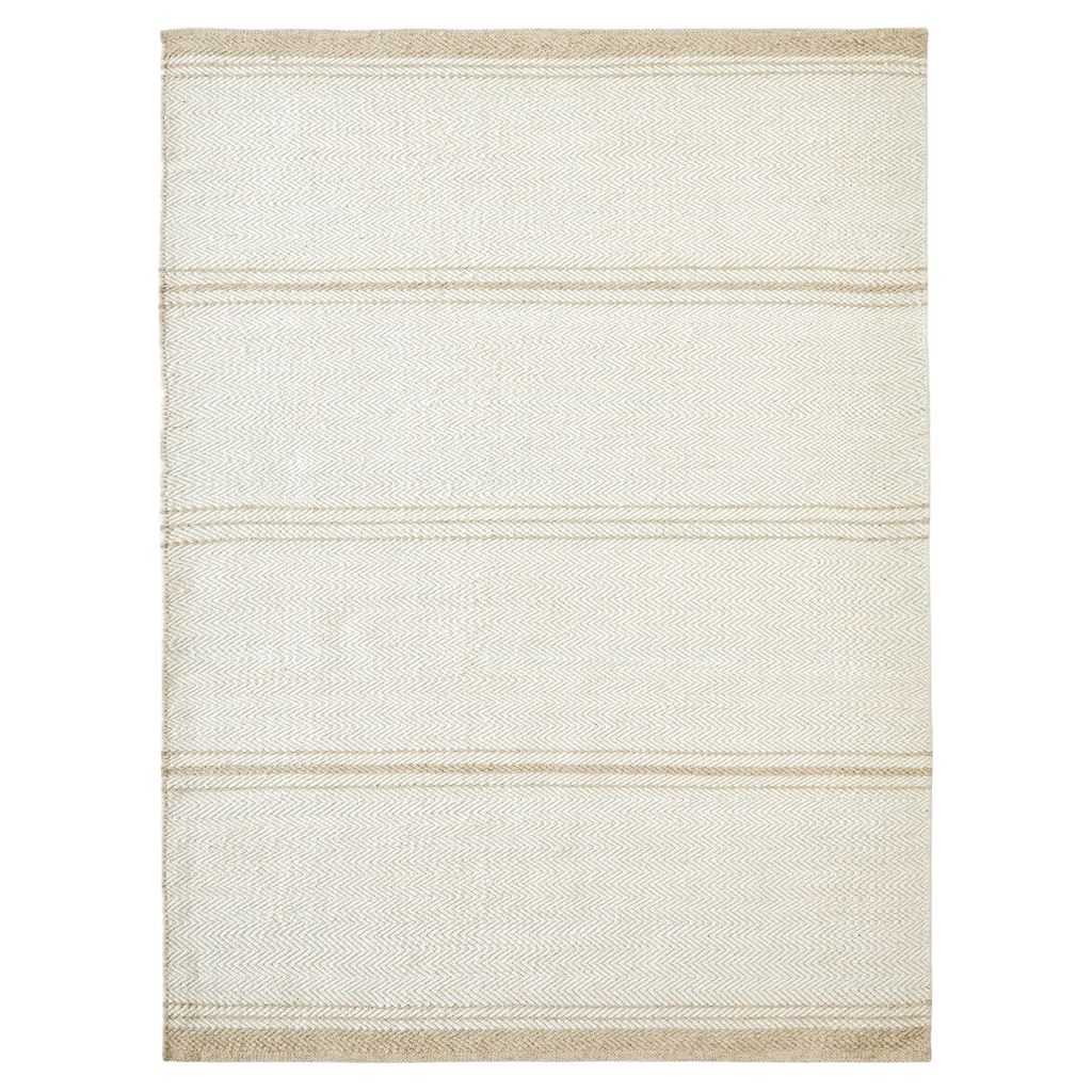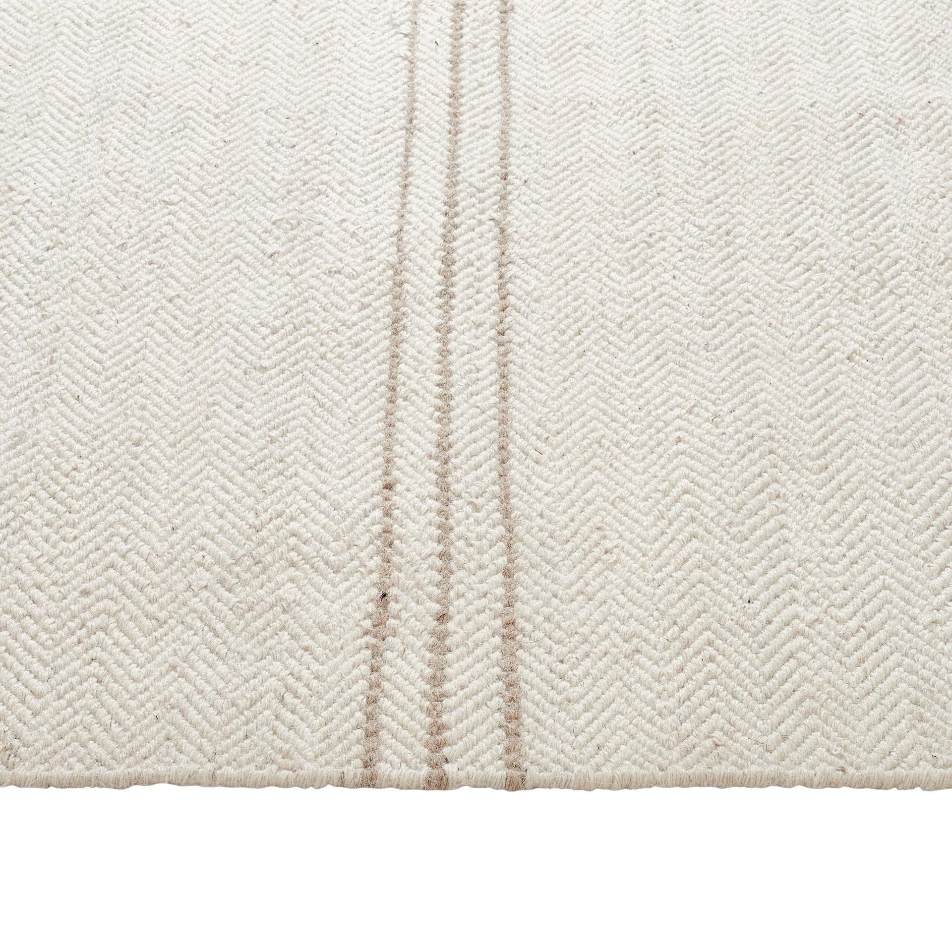 Offert en tailles diverses, ce tapis tissé à la main peut être installé dans le salon, la cuisine, le couloir, la chambre à coucher ou là où vous le souhaitez. L'alliage des rayures de tons ivoire et beige lui confère un aspect de grande élégance sans chichis. Il s'harmonisera en toute aisance avec des accessoires minimalistes ou un ameublement de facture traditionnelle.