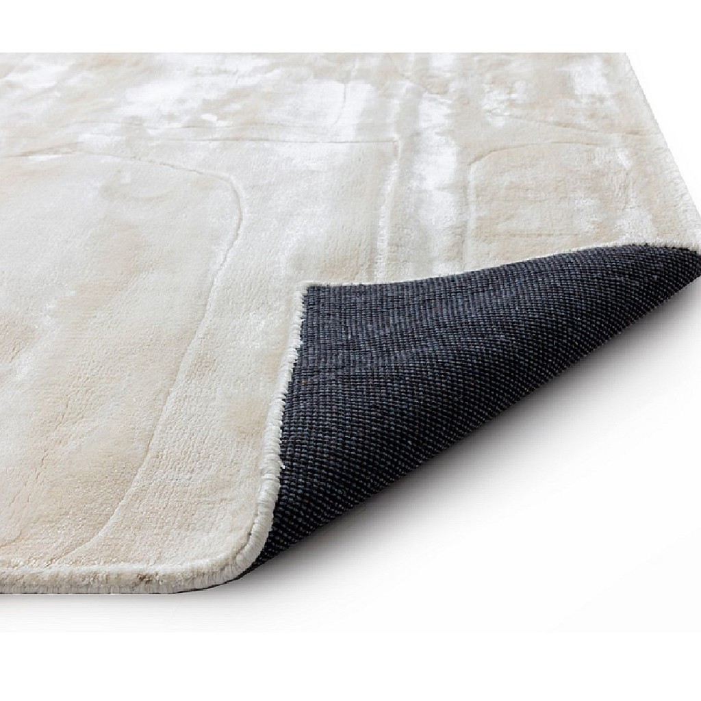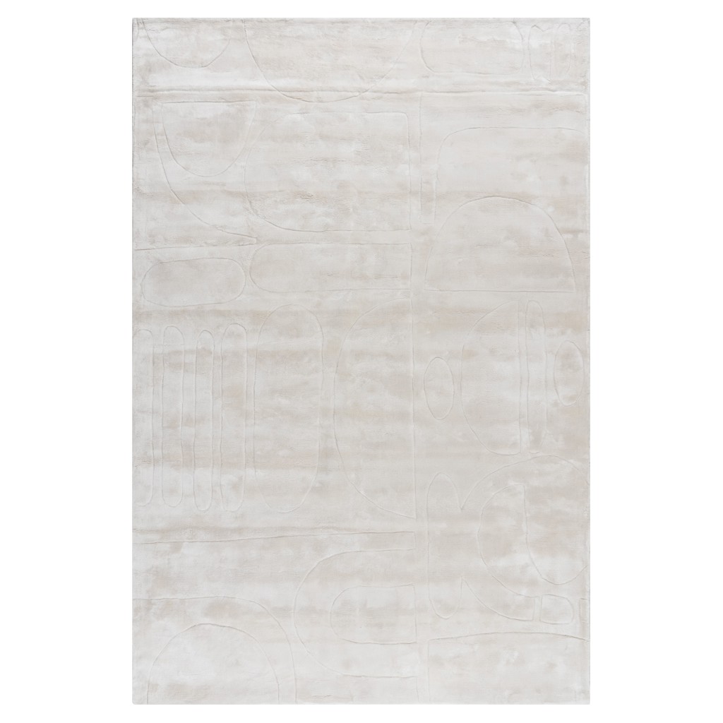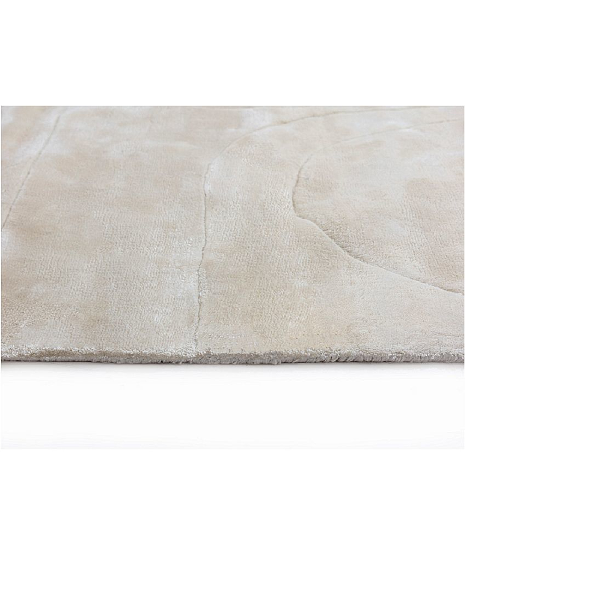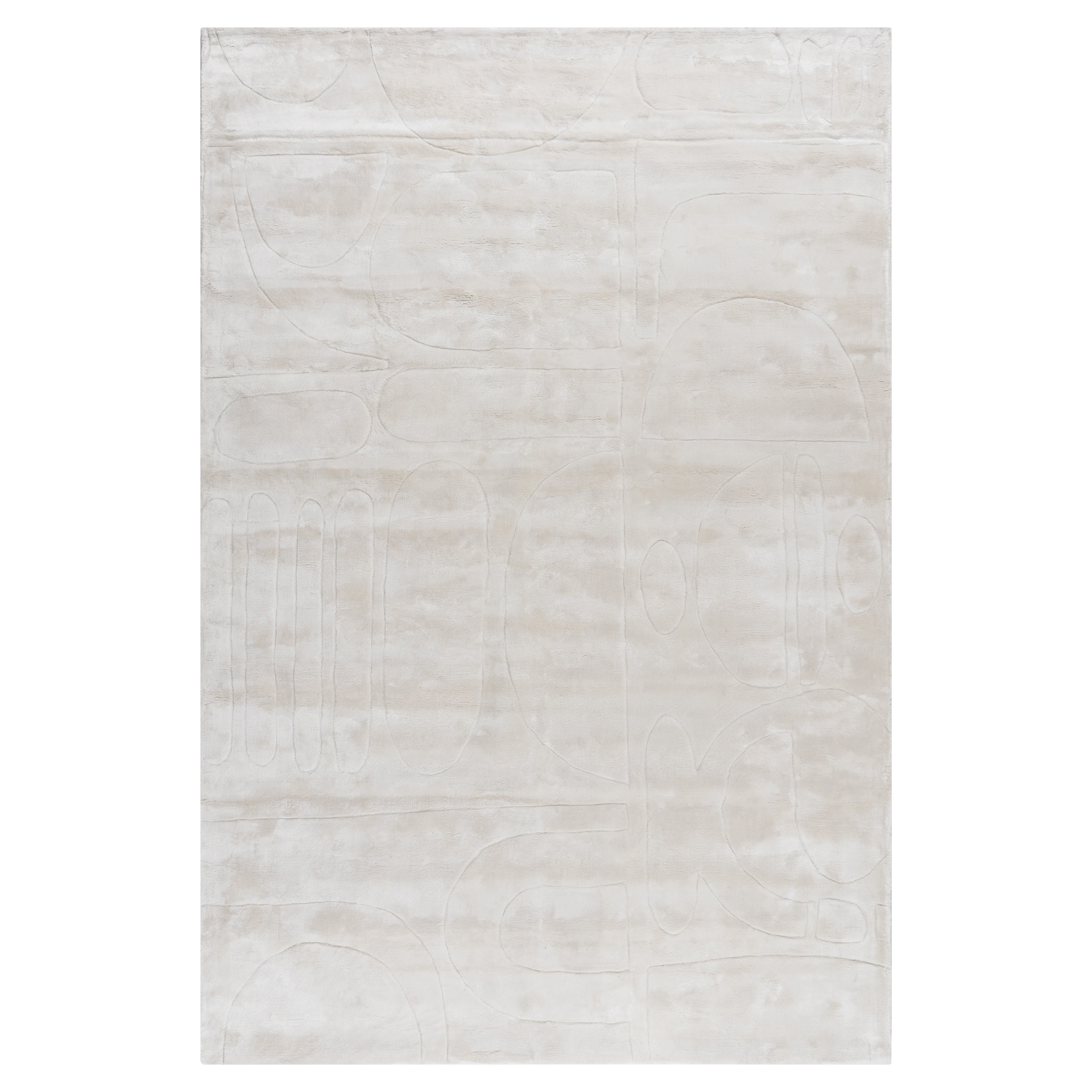 Fabriqué par des artisans locaux, ce tapis tissé à la main a une texture riche avec une finition douce et veloutée. Fabriqué en viscose crème et ivoire avec un motif unique aux formes organiques. Disponible en quatre tailles. Des variations de couleur, de design et de taille sont à prévoir et adoptées dans chaque tapis en raison du processus de tissage distinctif suivi par chaque artisan, ce qui donne une pièce vraiment unique en son genre.