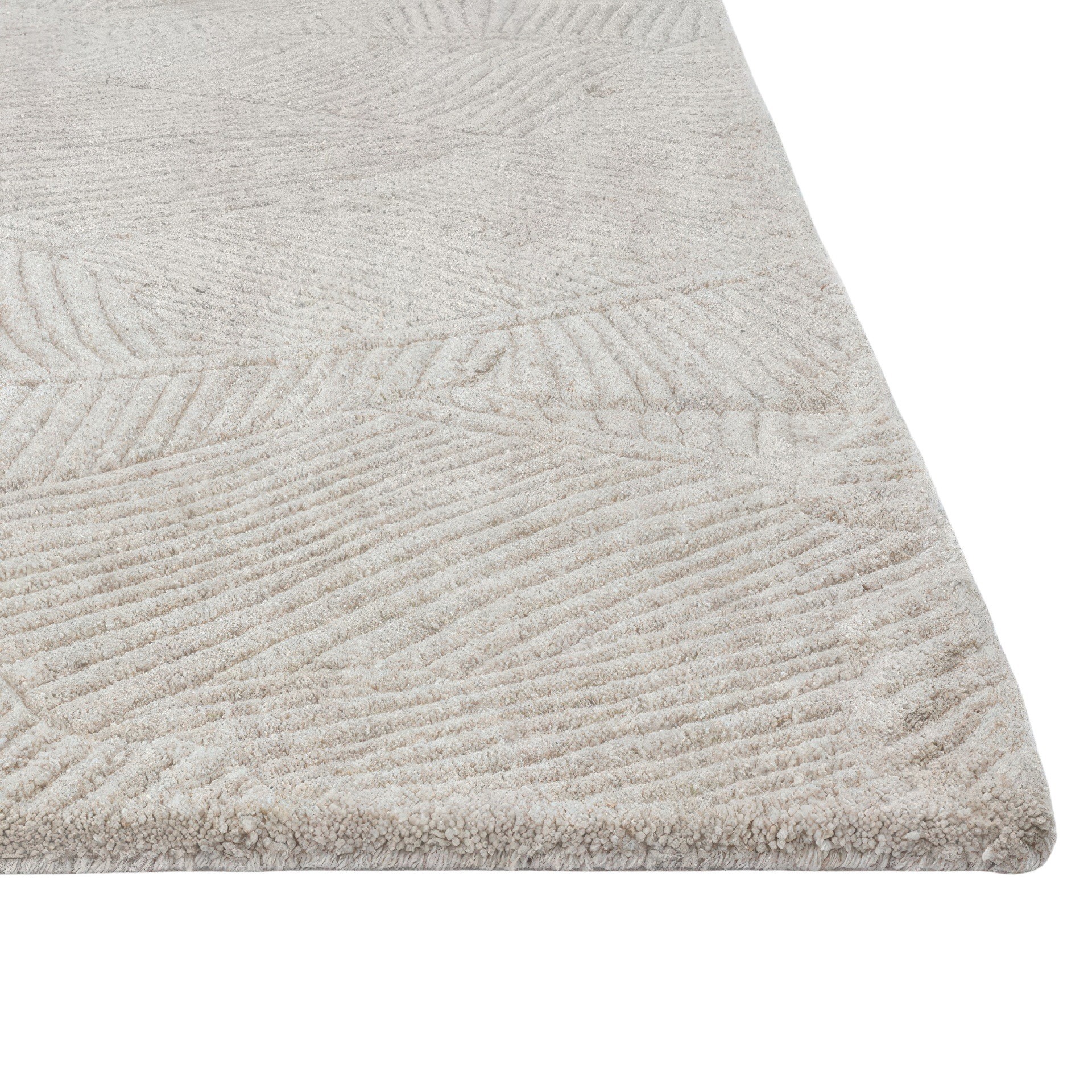 Introduisez un élément tropical discret dans votre espace avec ce tapis tufté à la main présentant un motif rappelant de grandes feuilles de palmier.
