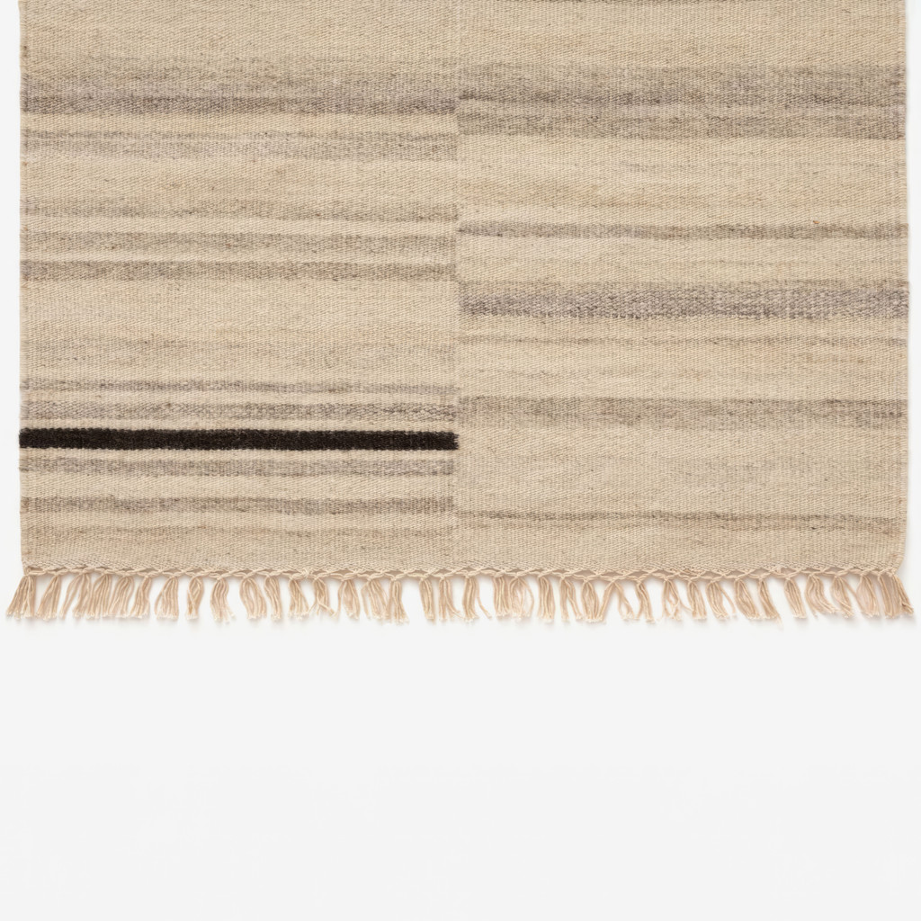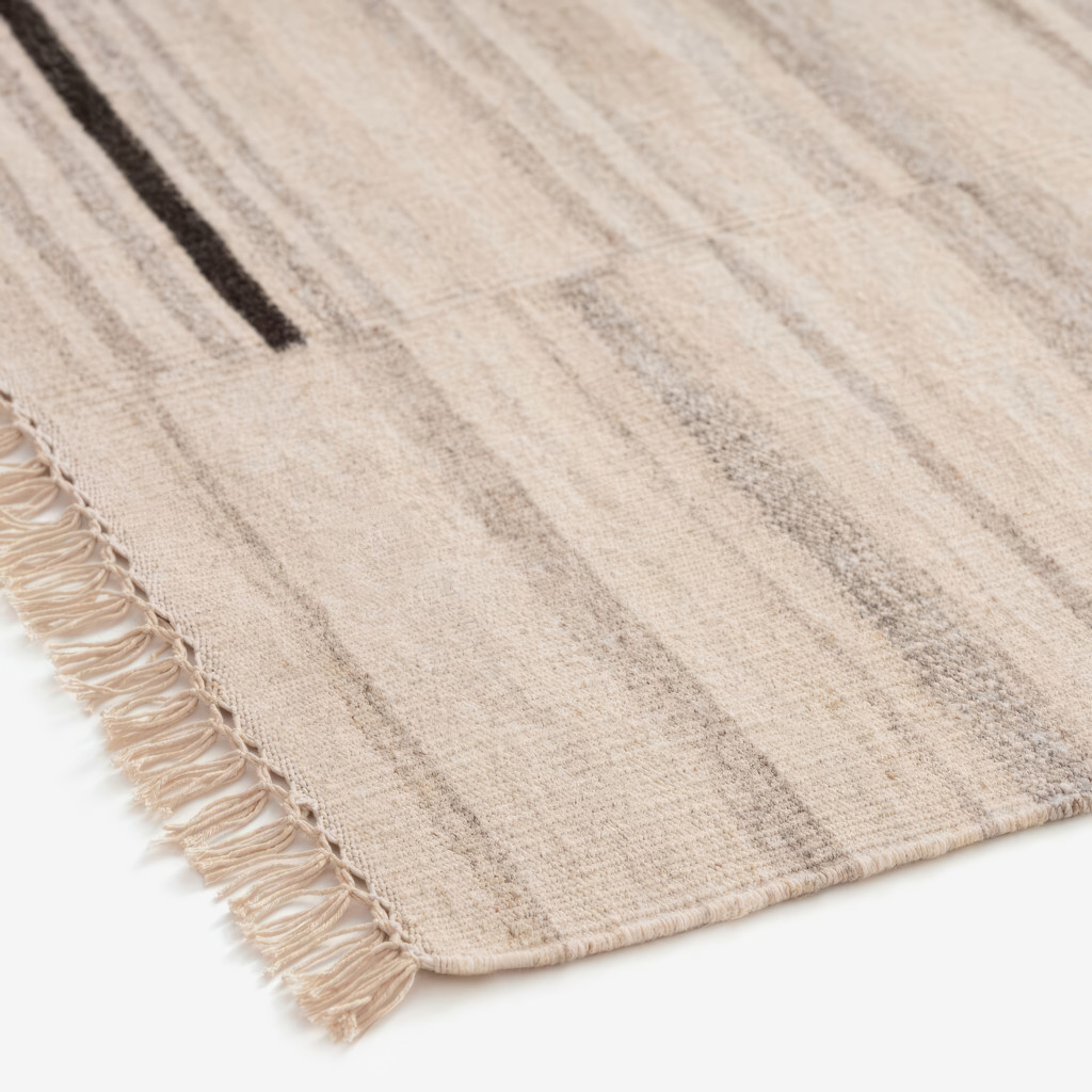 Le motif à rayures discontinues ajoute de la profondeur à toute pièce. Composé à 80 % de laine et 20 % de coton, ce tapis léger est tissé à la main sur un métier à tisser de plancher.