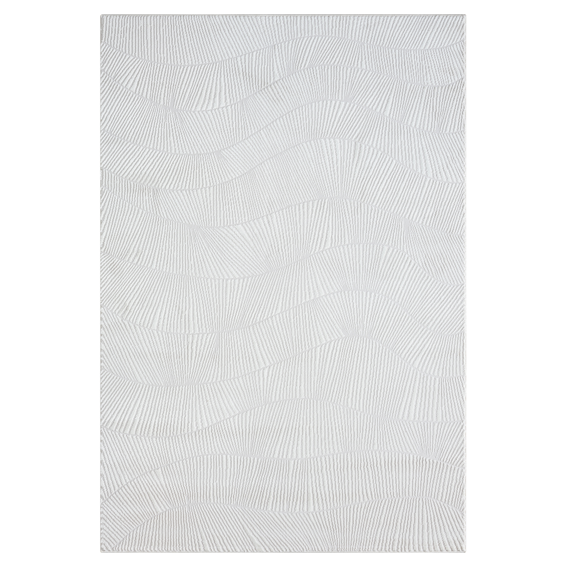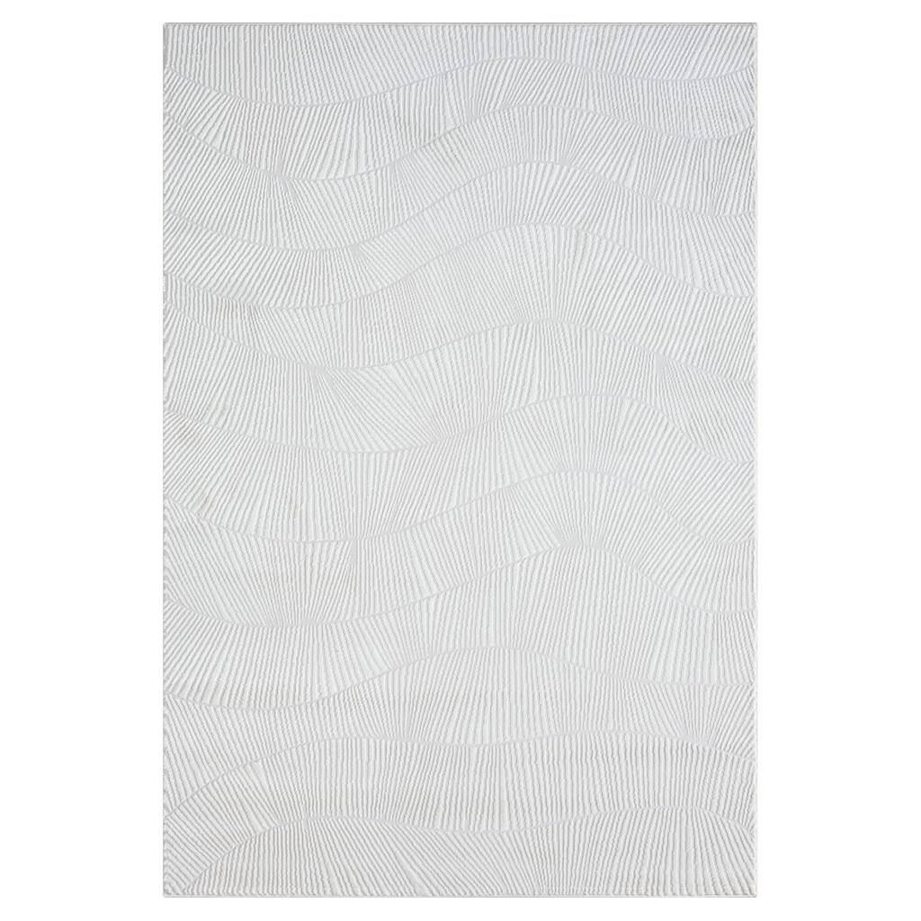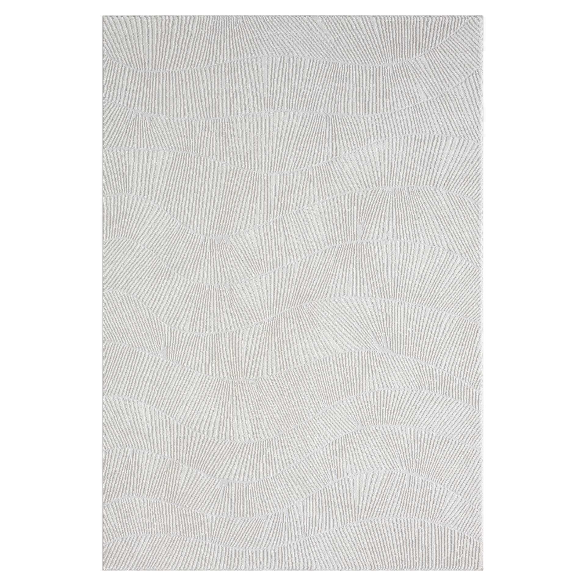 Carpette décorative moderne, douce au toucher et texture réconfortante. Motif ondulé ton sur ton. Faite en polypropylène et polyester.