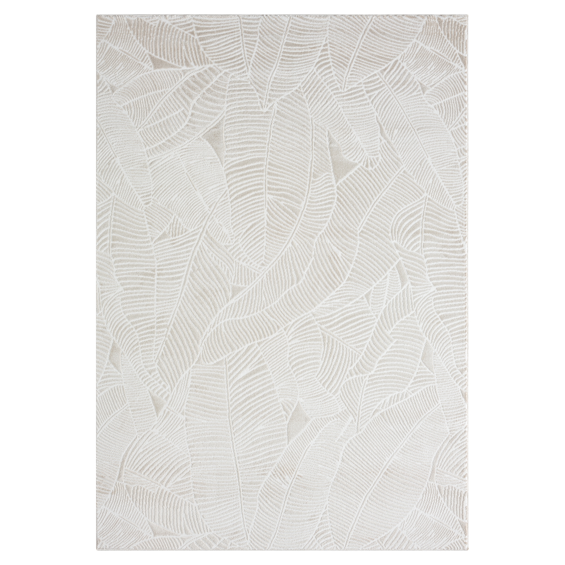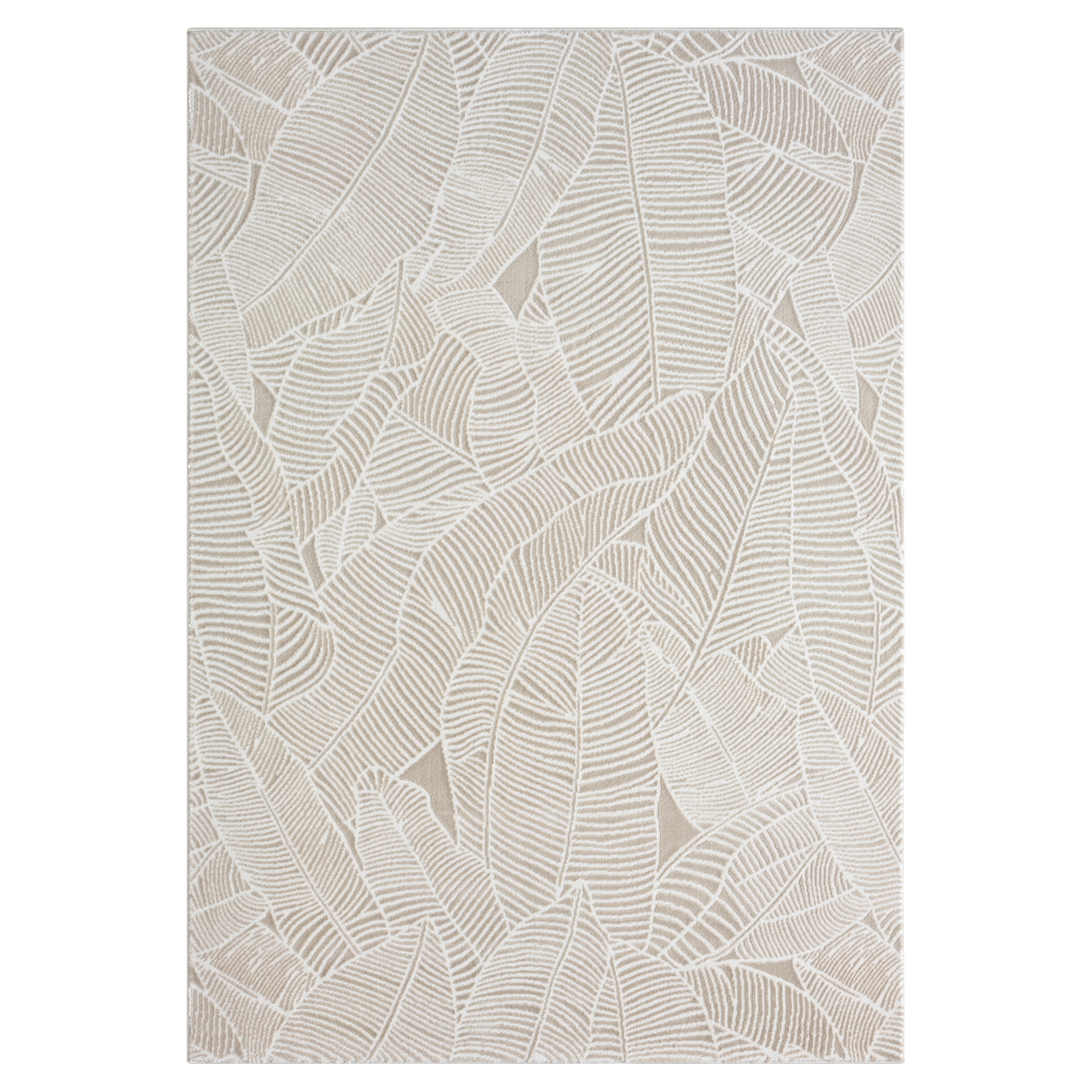 Carpette décorative moderne, douce au toucher et texture réconfortante. Motif feuillage ton sur ton. Faite en polypropylène et polyester.