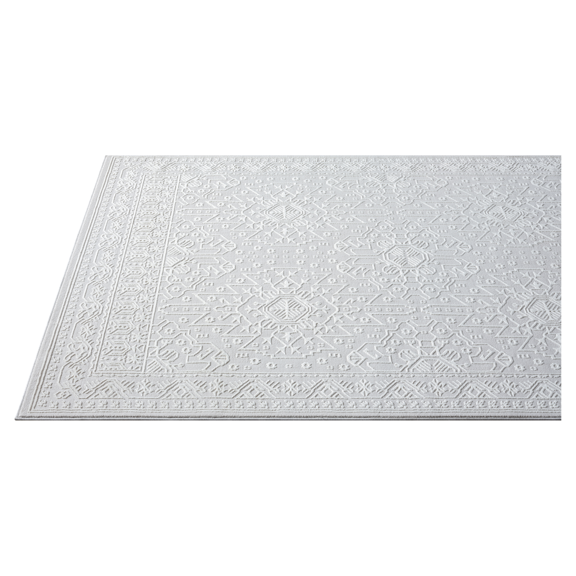 Carpette décorative moderne, douce au toucher et texture réconfortante. Motif traditionnel ton sur ton. Faite en polypropylène et polyester.