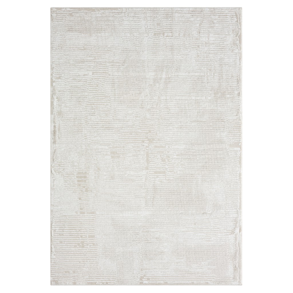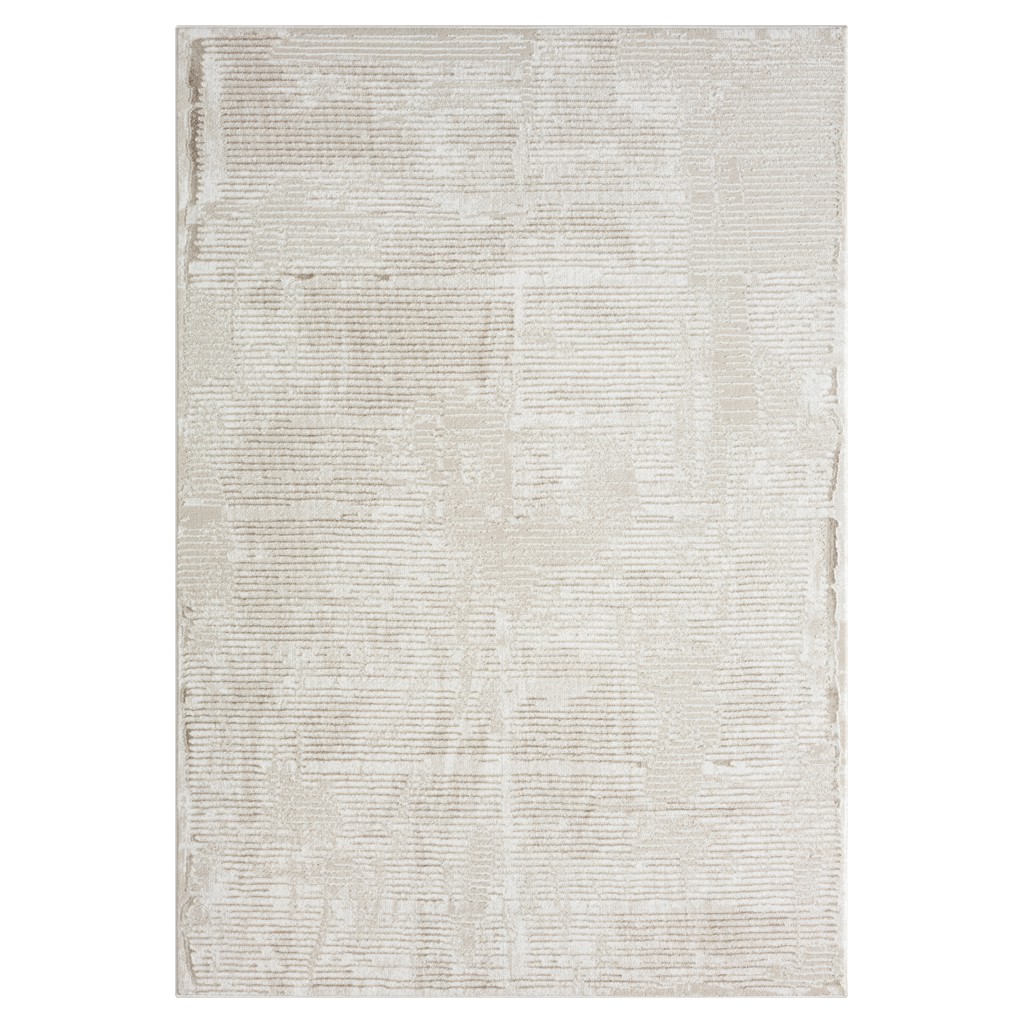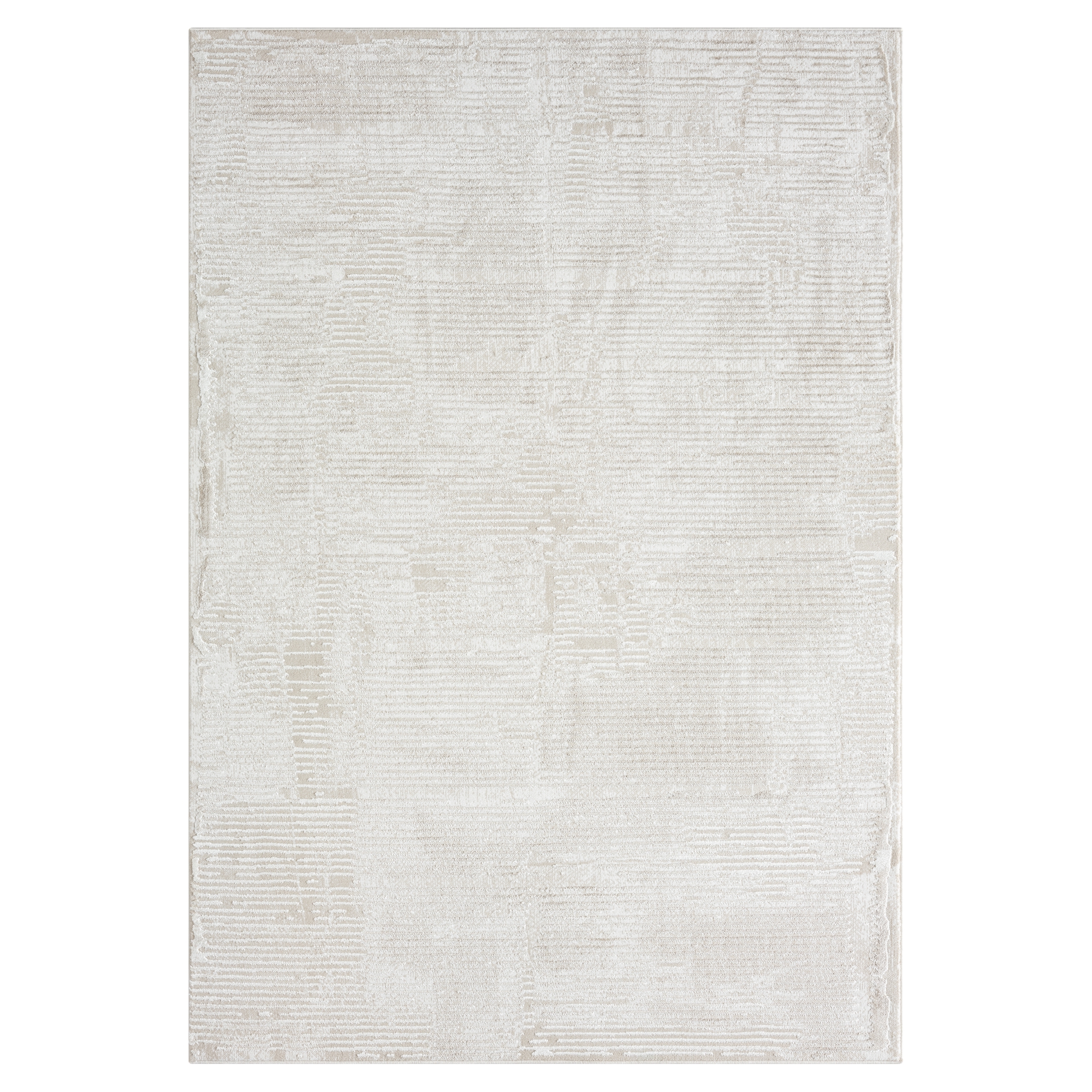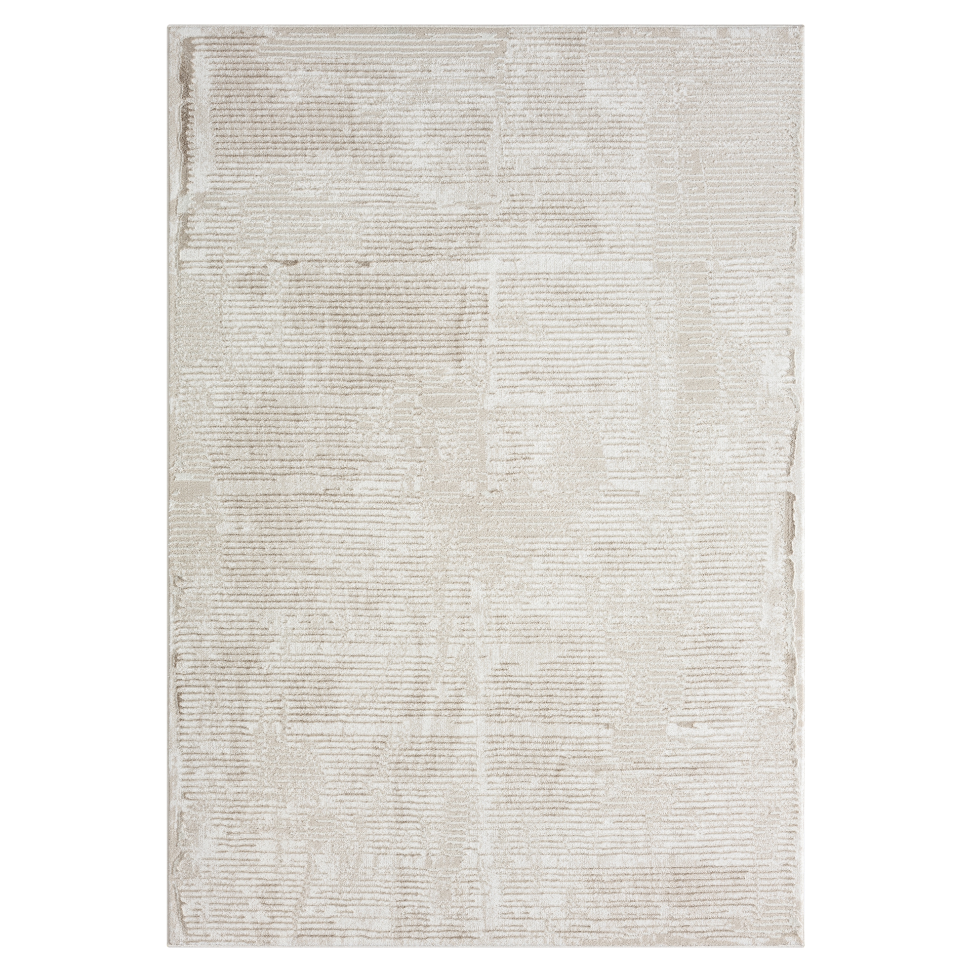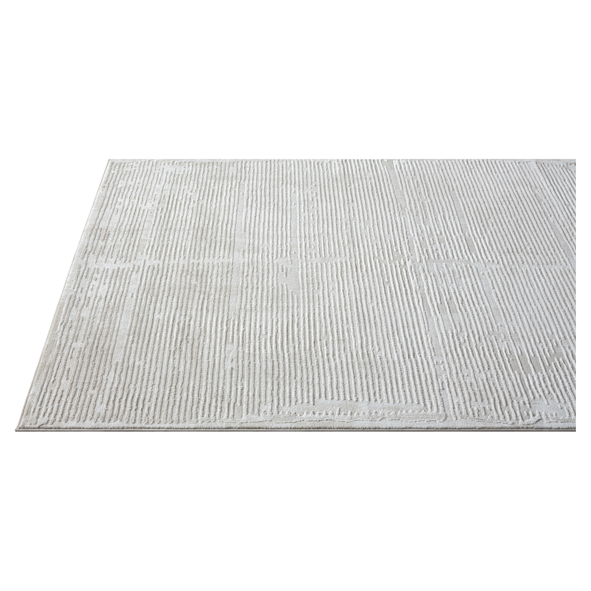 Carpette décorative moderne, douce au toucher et texture réconfortante. Motif rayures ton sur ton. Faite en polypropylène et polyester.