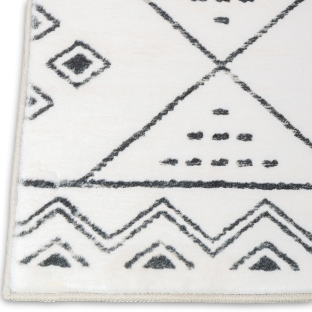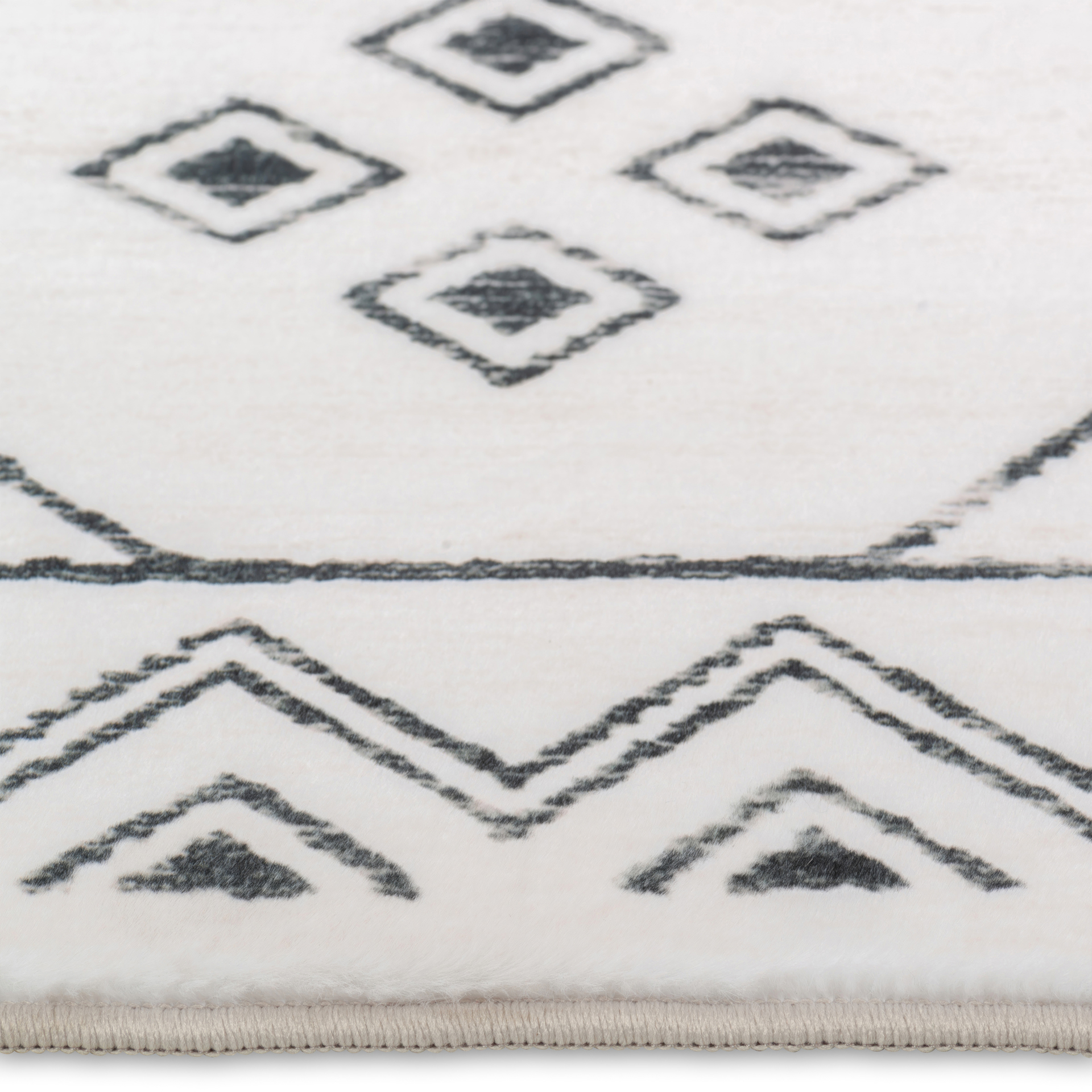 Détendez-vous dans le luxe avec notre tapis le plus doux jamais créé, orné d'un motif géométrique chic dans d'élégantes teintes ivoire et anthracite.