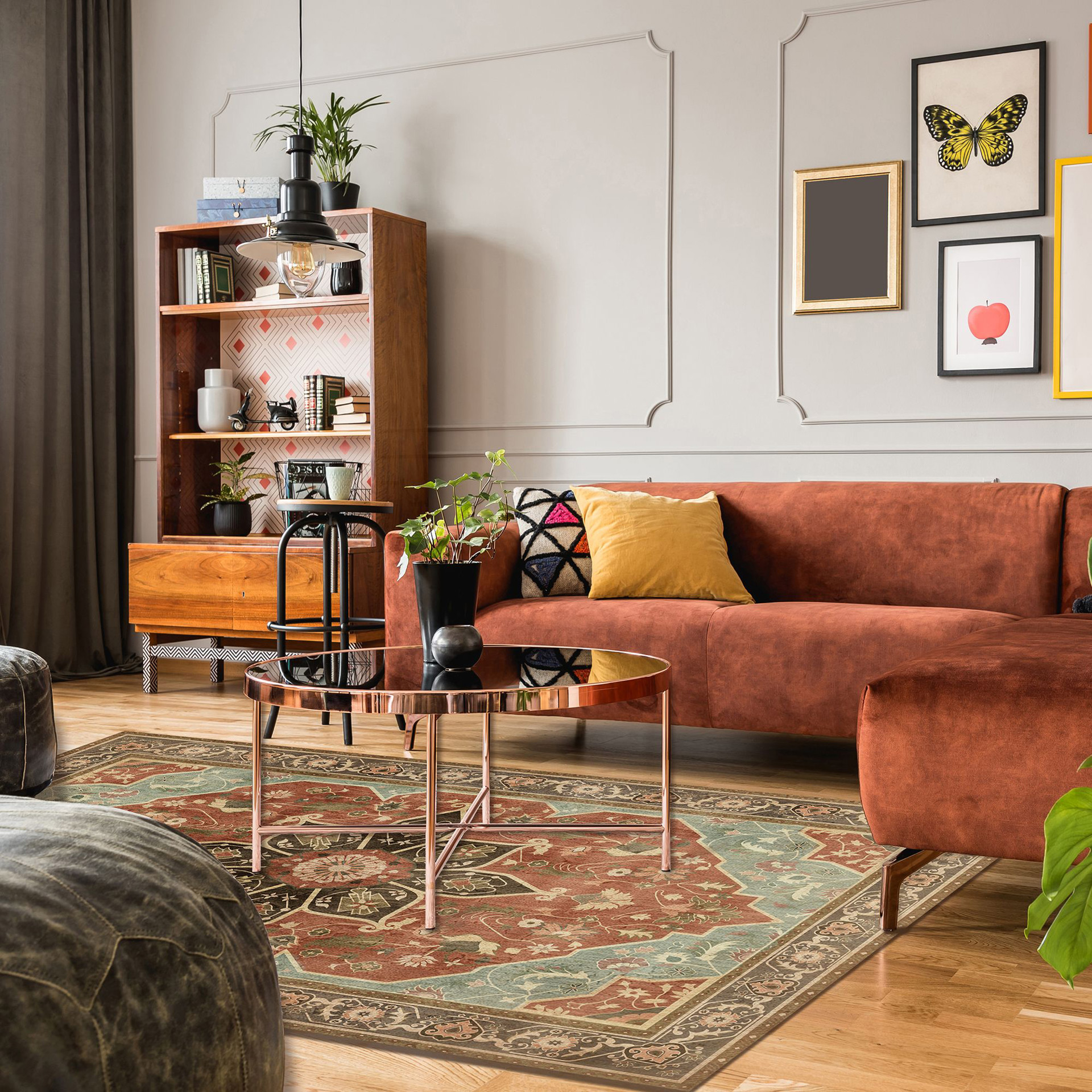 Ce tapis d'art présente une palette de couleurs vives et un beau motif. Il est antidérapant, imperméable, hypoallergénique et recyclable.