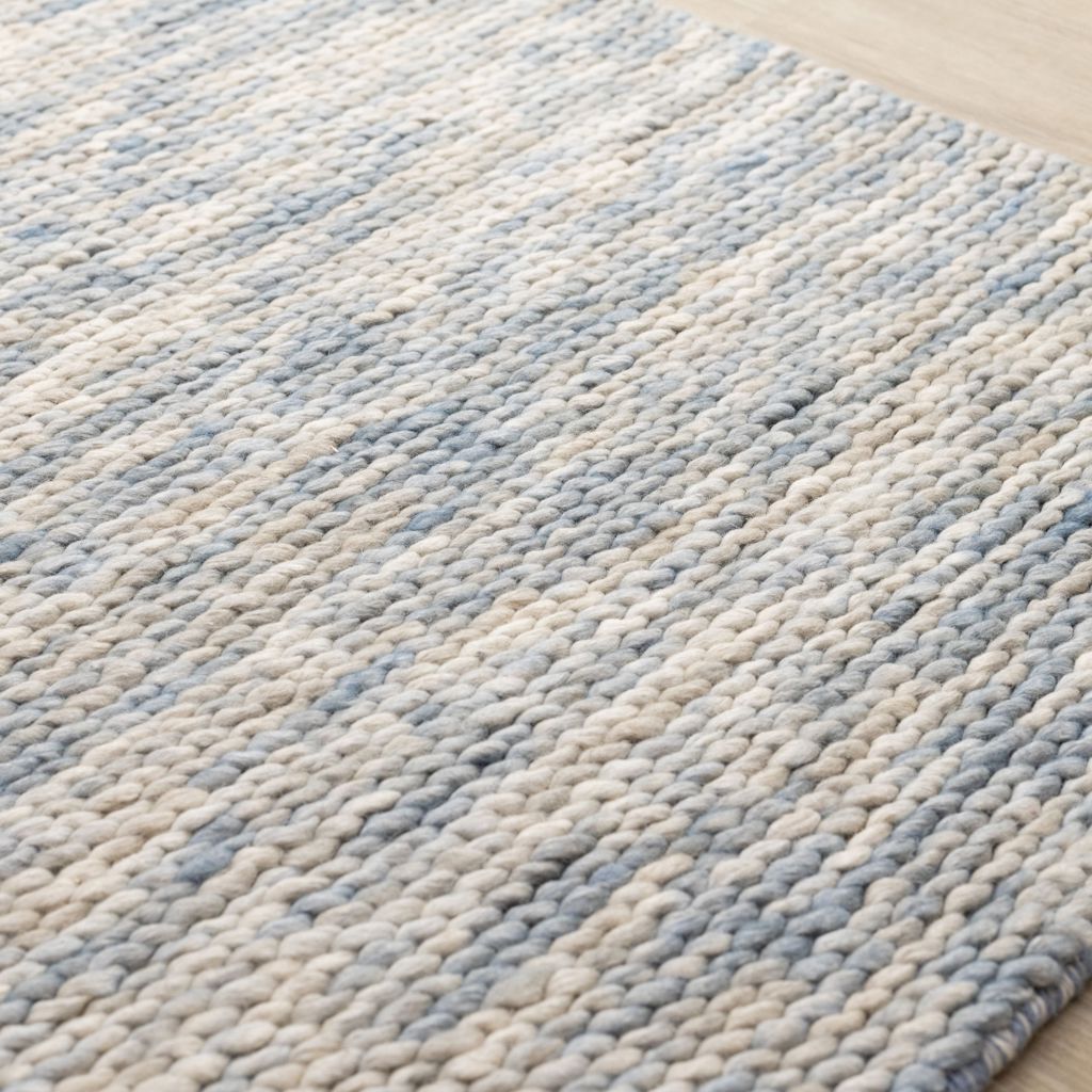 La collection Ripple, composée de tapis fabriqués à la main, présente une texture torsadée unique et un mélange de couleurs créant des motifs organiques.