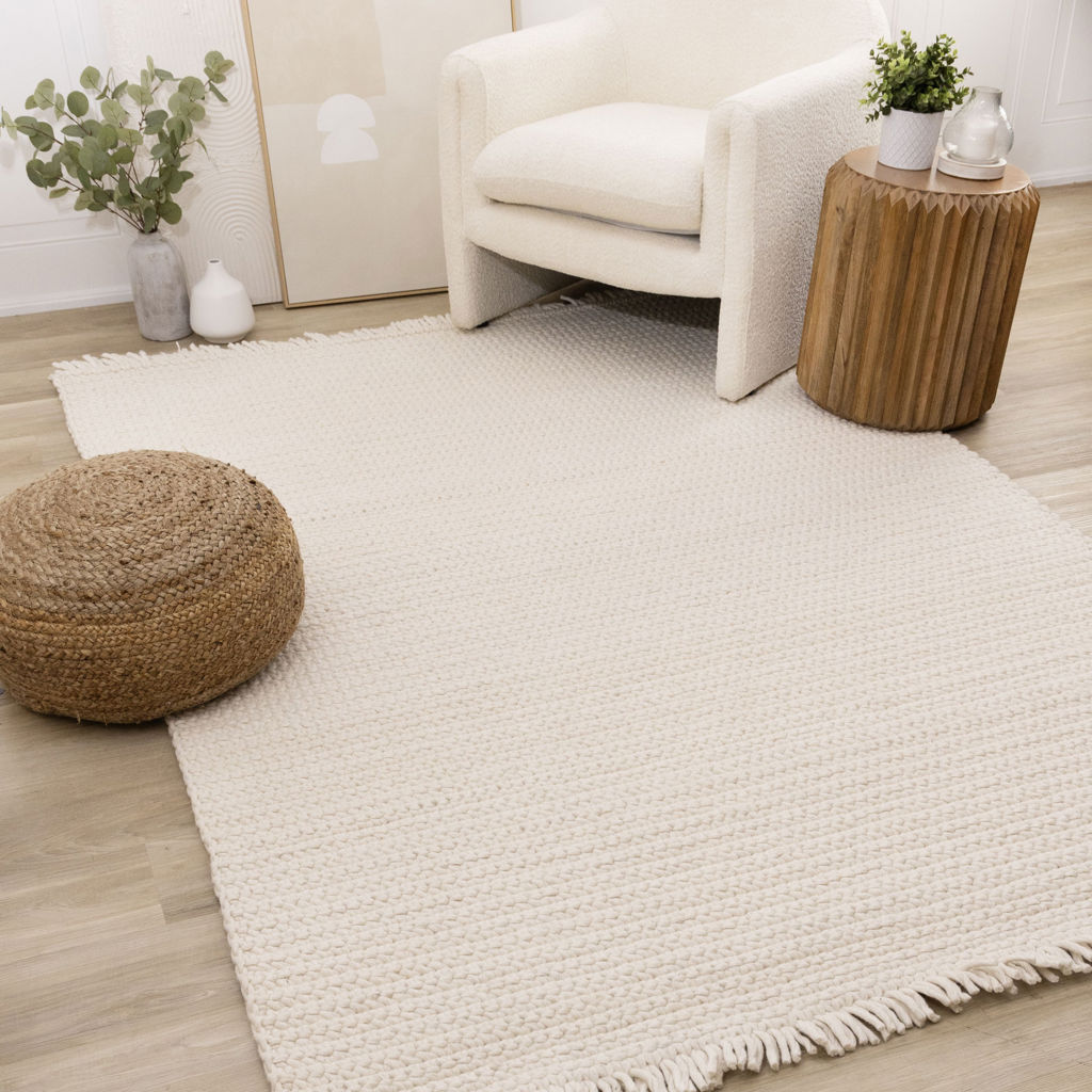 Tapis en 100% laine tissé à la main. Arrière en 100% coton.