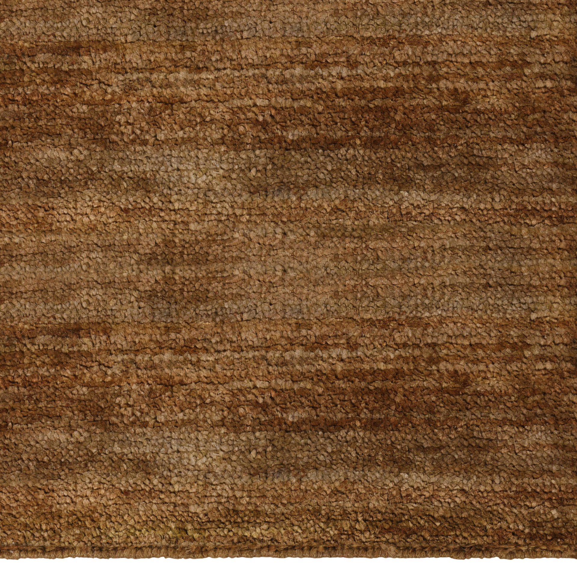 Fabriqué en jute naturel jamais teint, ce tapis noué à la main varie en couleur en fonction du moment où son matériau durable a été récolté.