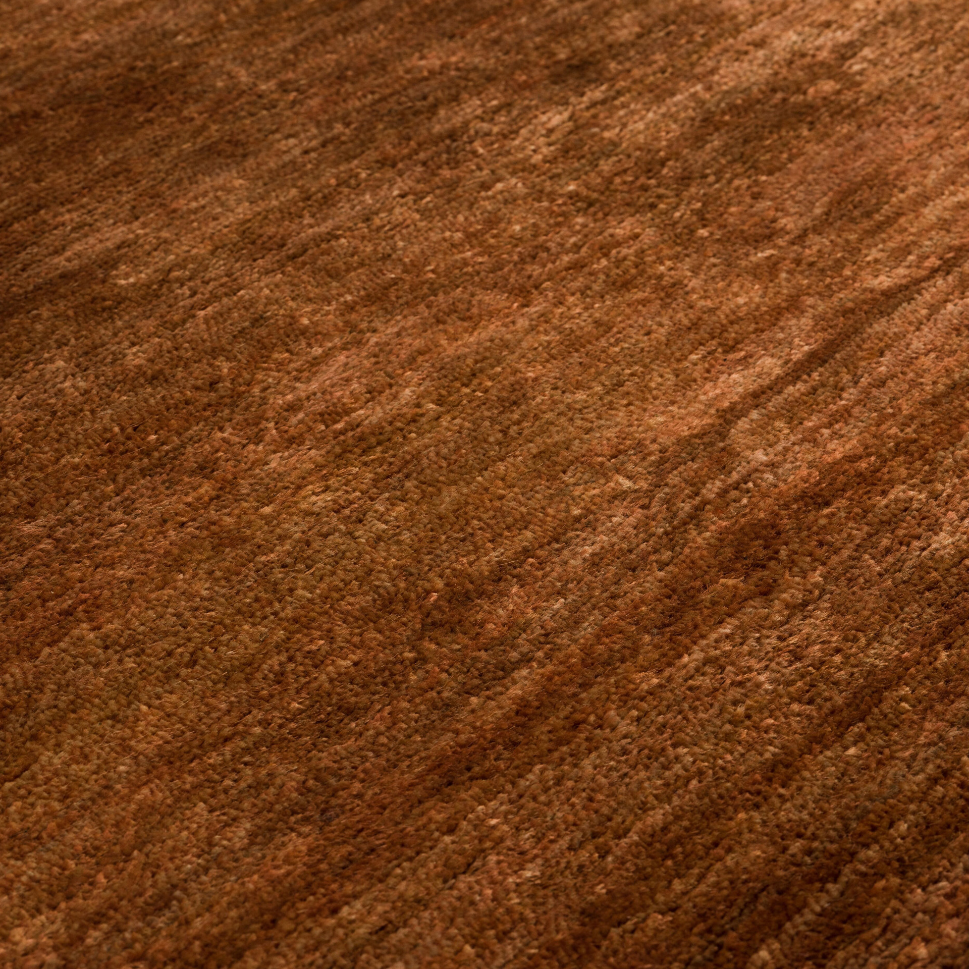 Fabriqué en jute naturel jamais teint, ce tapis noué à la main varie en couleur en fonction du moment où son matériau durable a été récolté.
