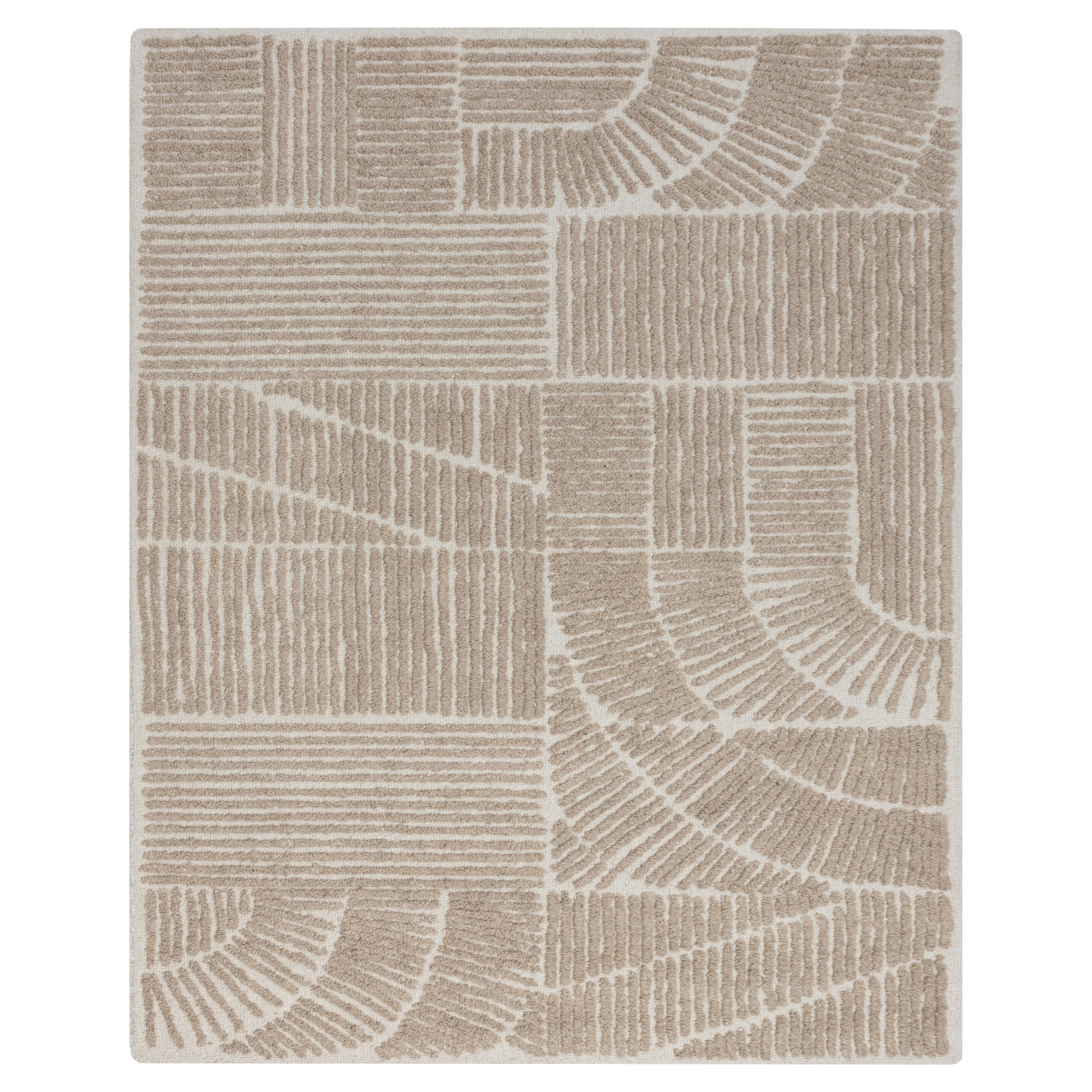 Le velours moelleux sculpté du tapis Corinthia présente un motif abstrait composé de lignes variées. Tissé à la main dans un mélange de laine et de viscose pour une finition luxueusement douce.