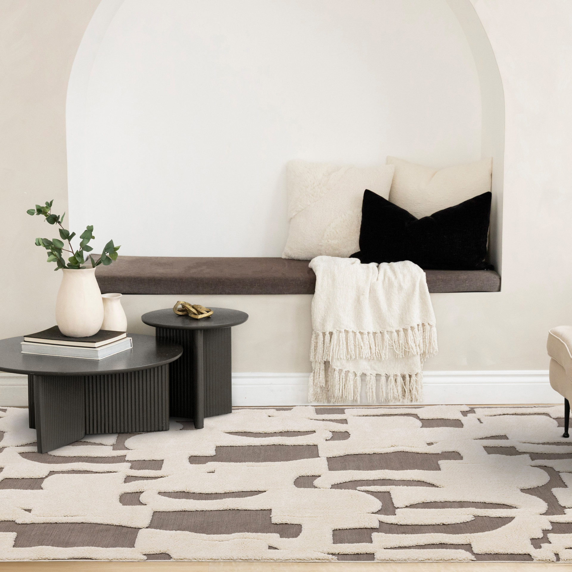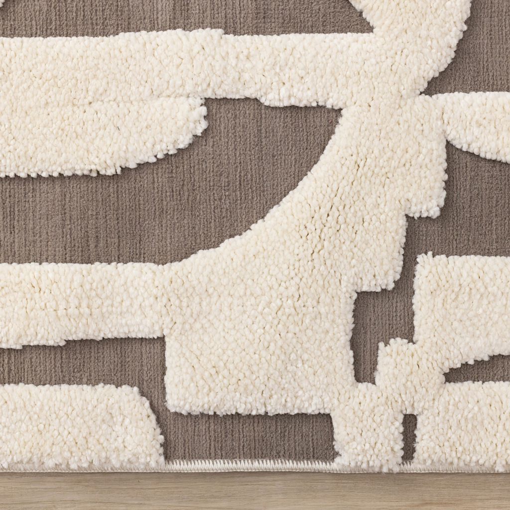 La collection Mareeba présente une construction haute-basse saisissante, créant une esthétique audacieuse et moderne. Les différentes hauteurs de poils ajoutent de la profondeur et de l'intérêt, tandis que la texture douce rehausse la pièce avec chaleur et attrait tactile. Ce tapis est fait de polyester, un matériau résistant aux taches, qui ajoute de la dimension et de la durabilité à ses motifs.